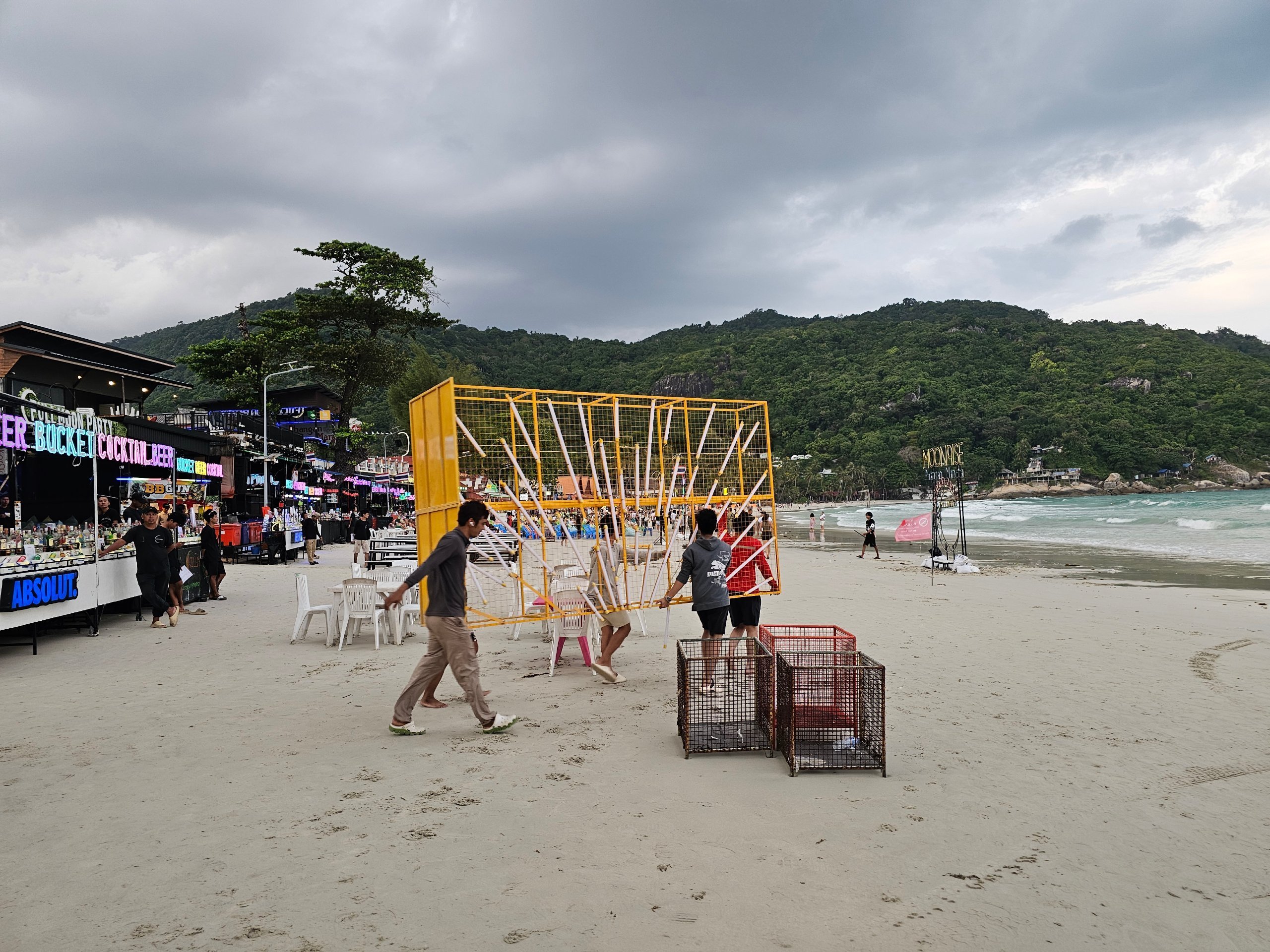 Nasza pierwsza wizyta na plaży Haad Rin odbyła się po południu, kiedy trwały jeszcze przygotowania.