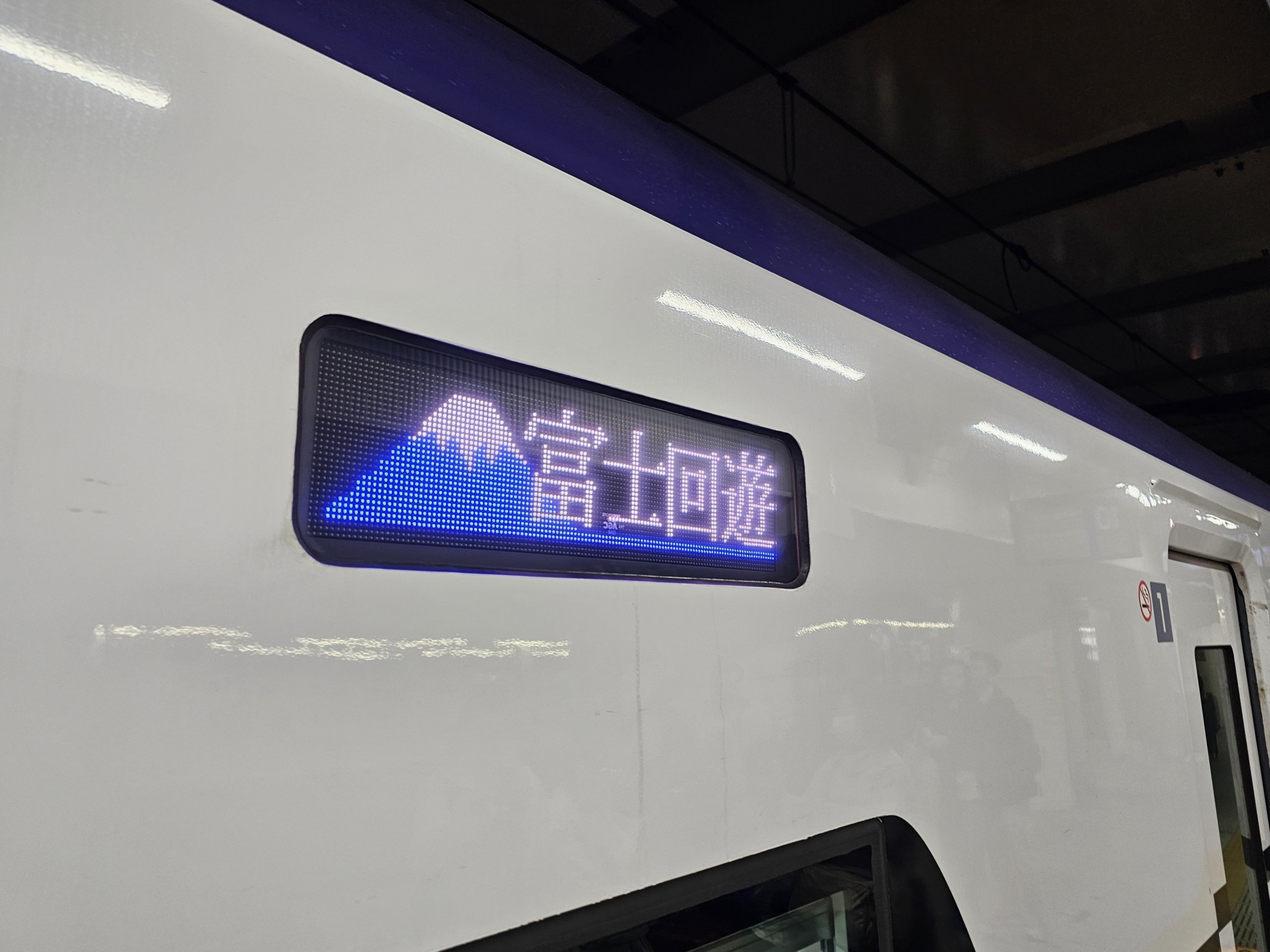 Góra Fuji jest najlepiej widoczna między stacjami Fuji i Mishima - około 40 do 50 minut po opuszczeniu Tokio lub 115 minut po opuszczeniu Nagoi.