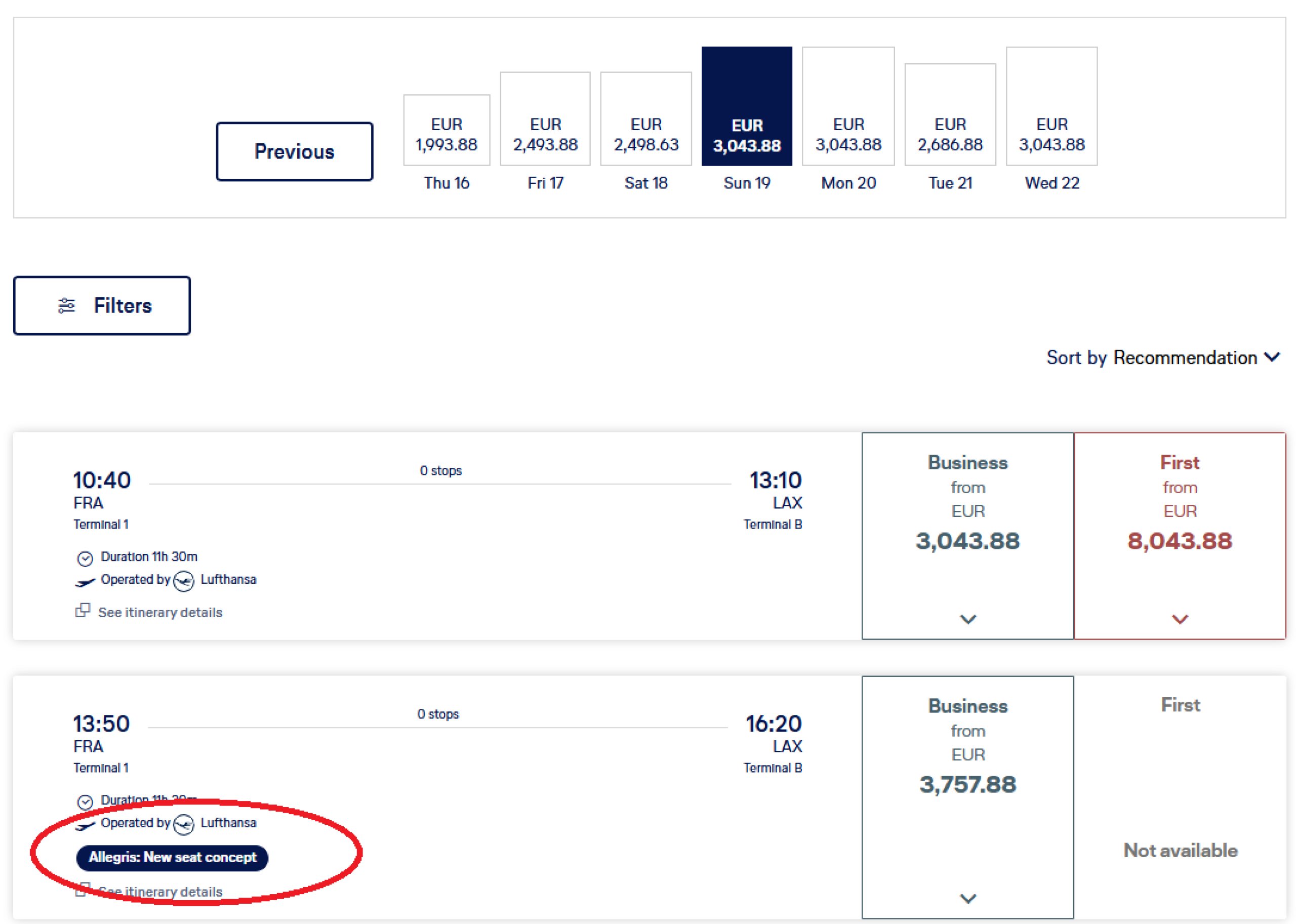Zawsze ważne jest, aby wybrać konkretny numer lotu. Na niektórych trasach (na przykład Frankfurt - Los Angeles) jest kilka lotów dziennie, ale tylko jeden z nich jest wyposażony w fotele Allegris.