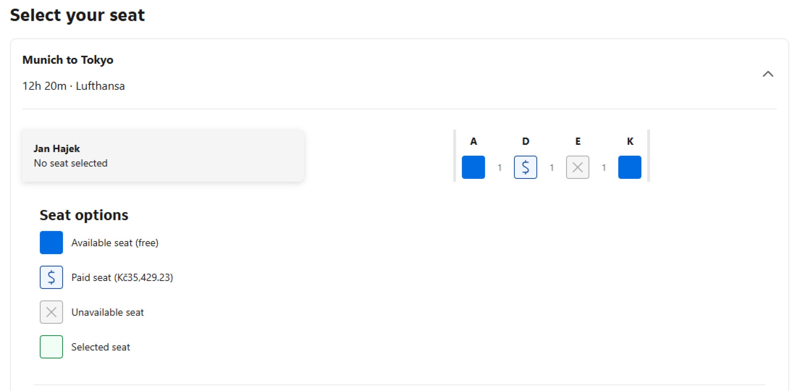 - różne typy miejsc w klasie biznes