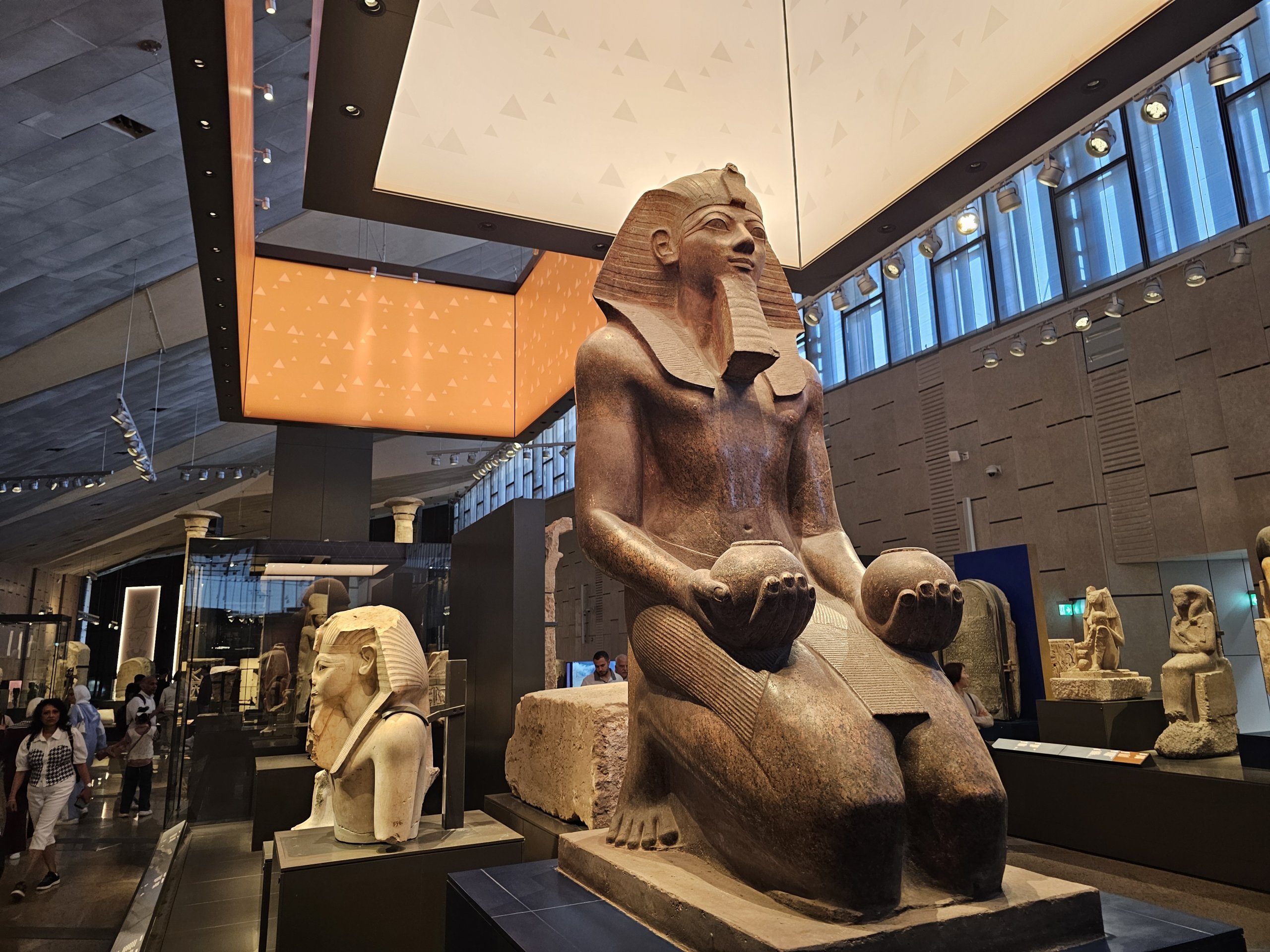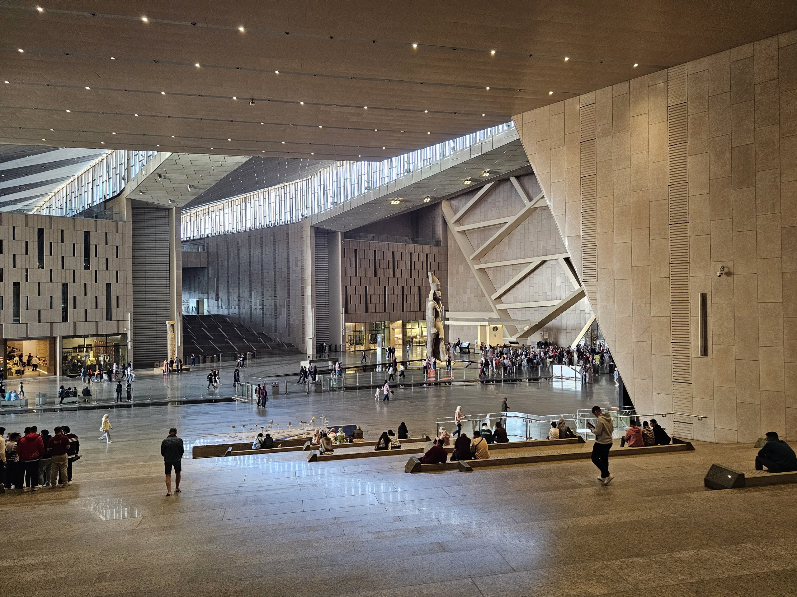 Wewnątrz znajduje się ogromna przestrzeń zdominowana przez 11-metrowy posąg faraona Ramzesa II, jeden z najbardziej znanych artefaktów w całym muzeum.