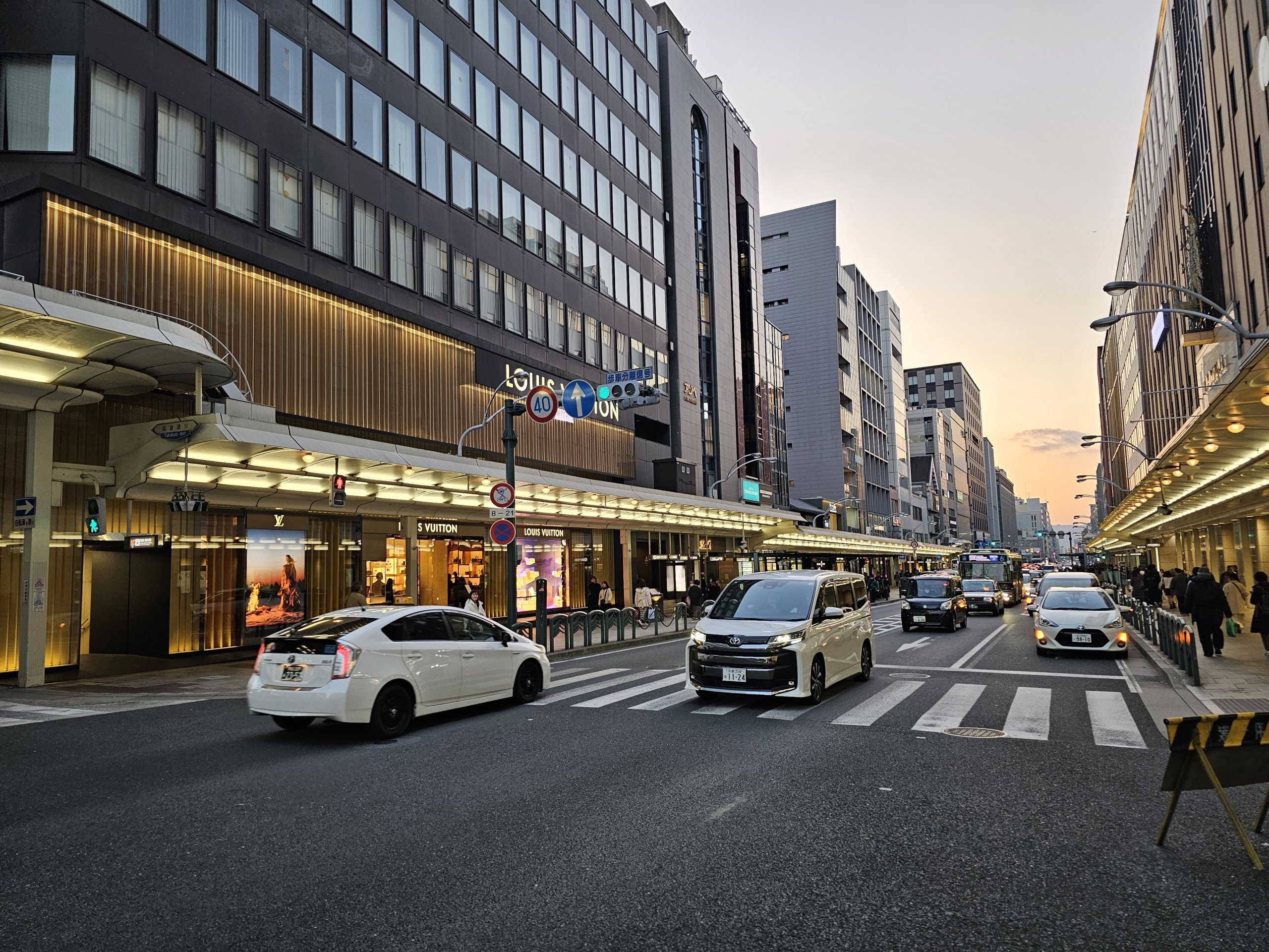 Najbardziej ruchliwym miejscem jest skrzyżowanie Shijo-Kawaramachi, które jest jednym z najbardziej tętniących życiem miejsc w mieście.