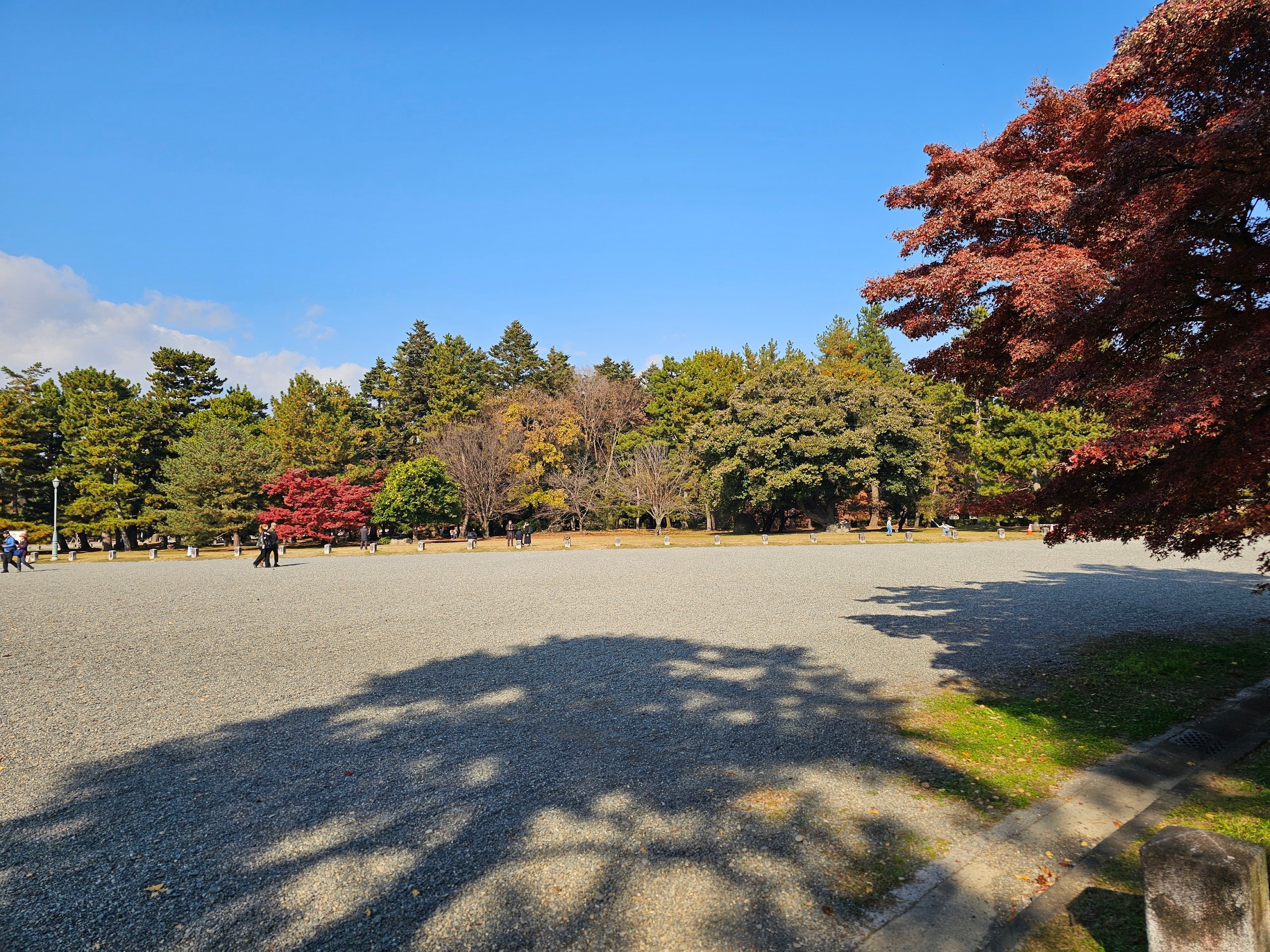 Ogrody i park Kyoto Gyoen tworzą dużą zieloną przestrzeń, idealną na spokojny spacer między zwiedzaniem bardziej ruchliwych zabytków.