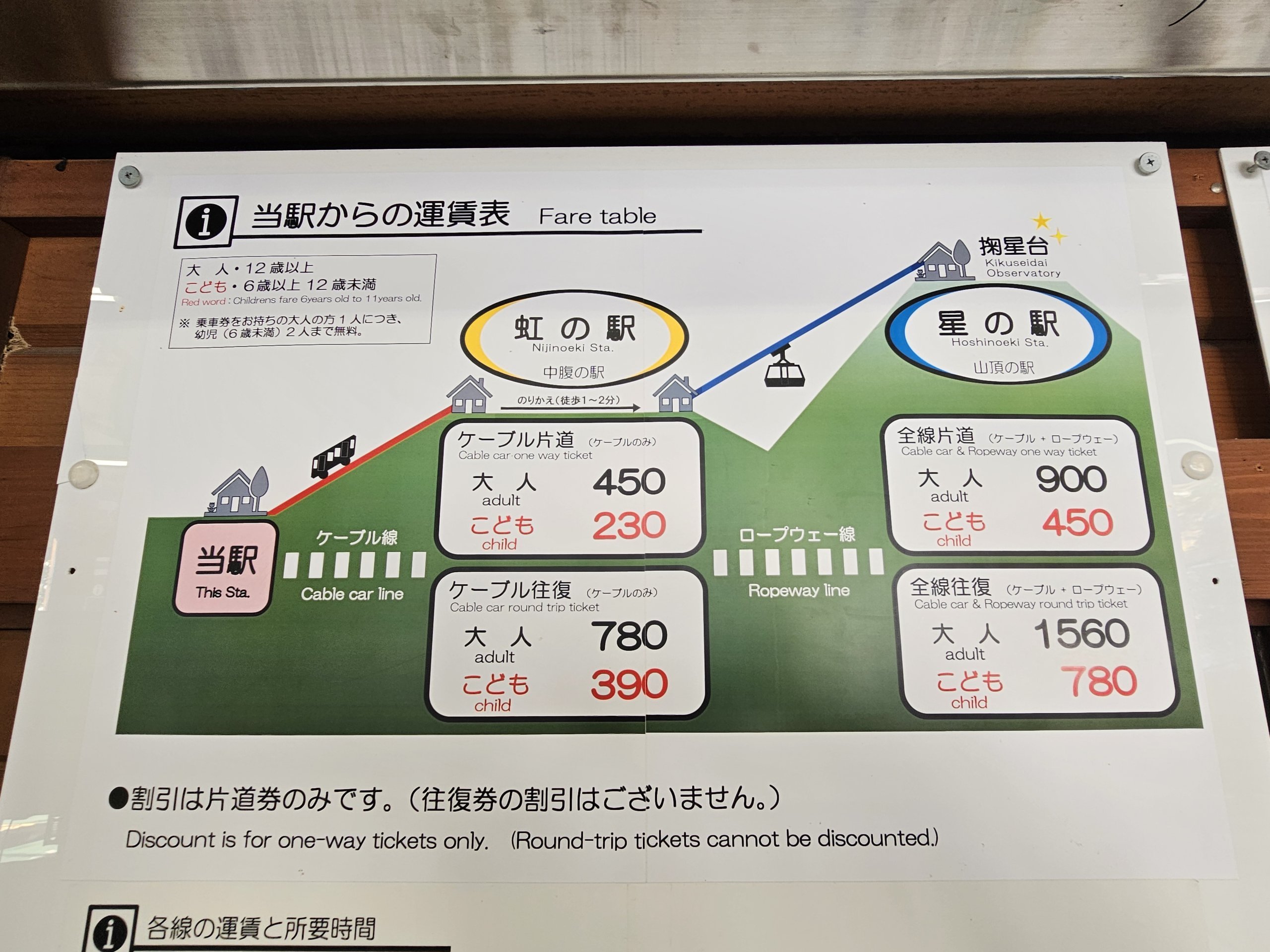 - 900 jpy - podróż w jedną stronę (w górę lub w dół)