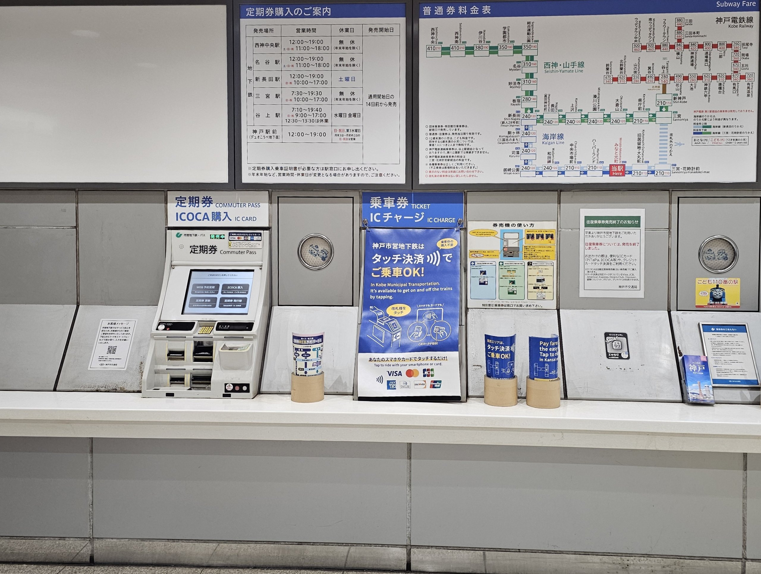 Karta ICOCA jest sprzedawana w Kobe lub Osace, ale można tu używać dowolnej ogólnokrajowej japońskiej karty, takiej jak Suica z Tokio.