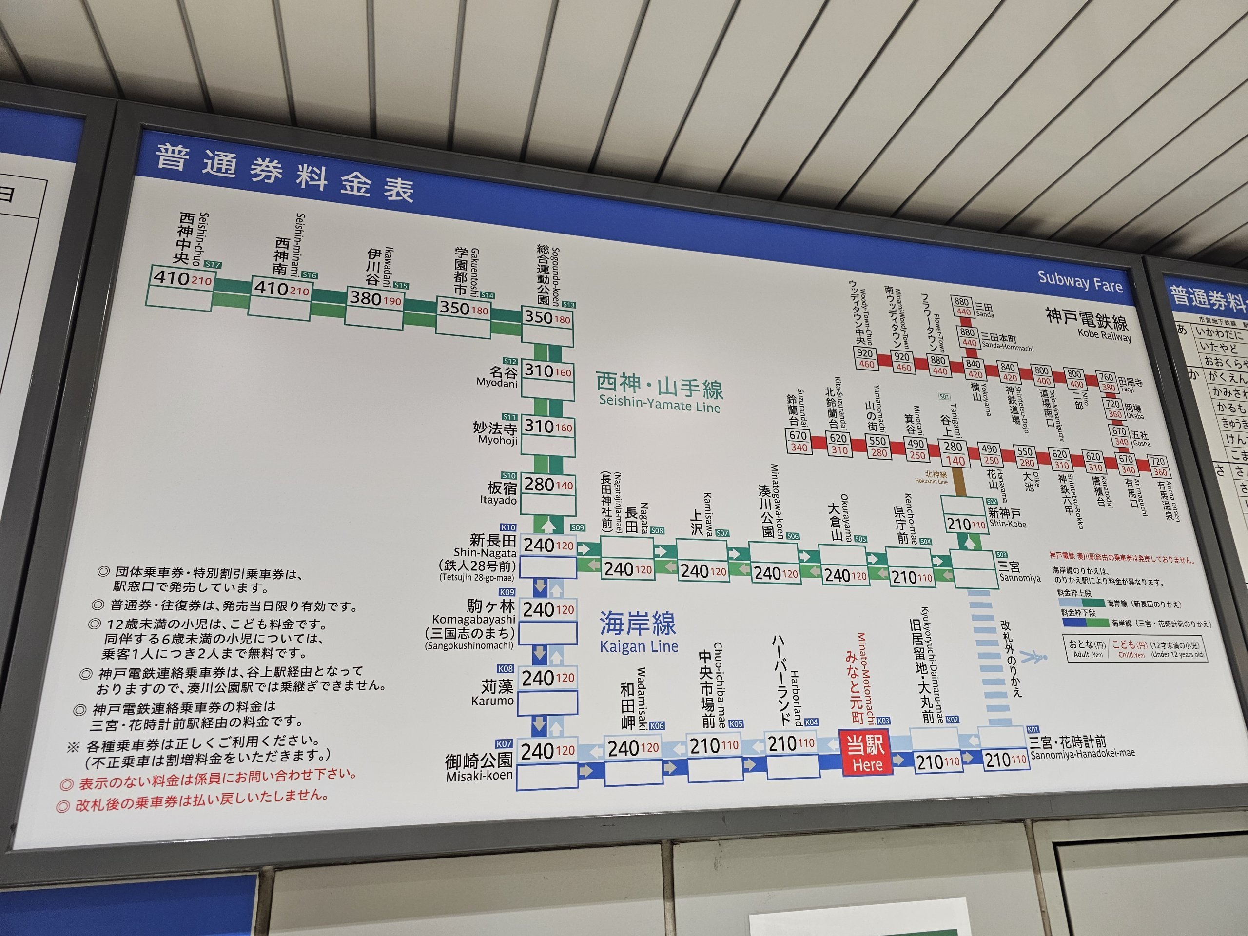 Wyjątkiem jest niewielki obszar śródmiejski wokół stacji Sannomiya, gdzie za 1 przejazd płaci się tylko 120 jpy.