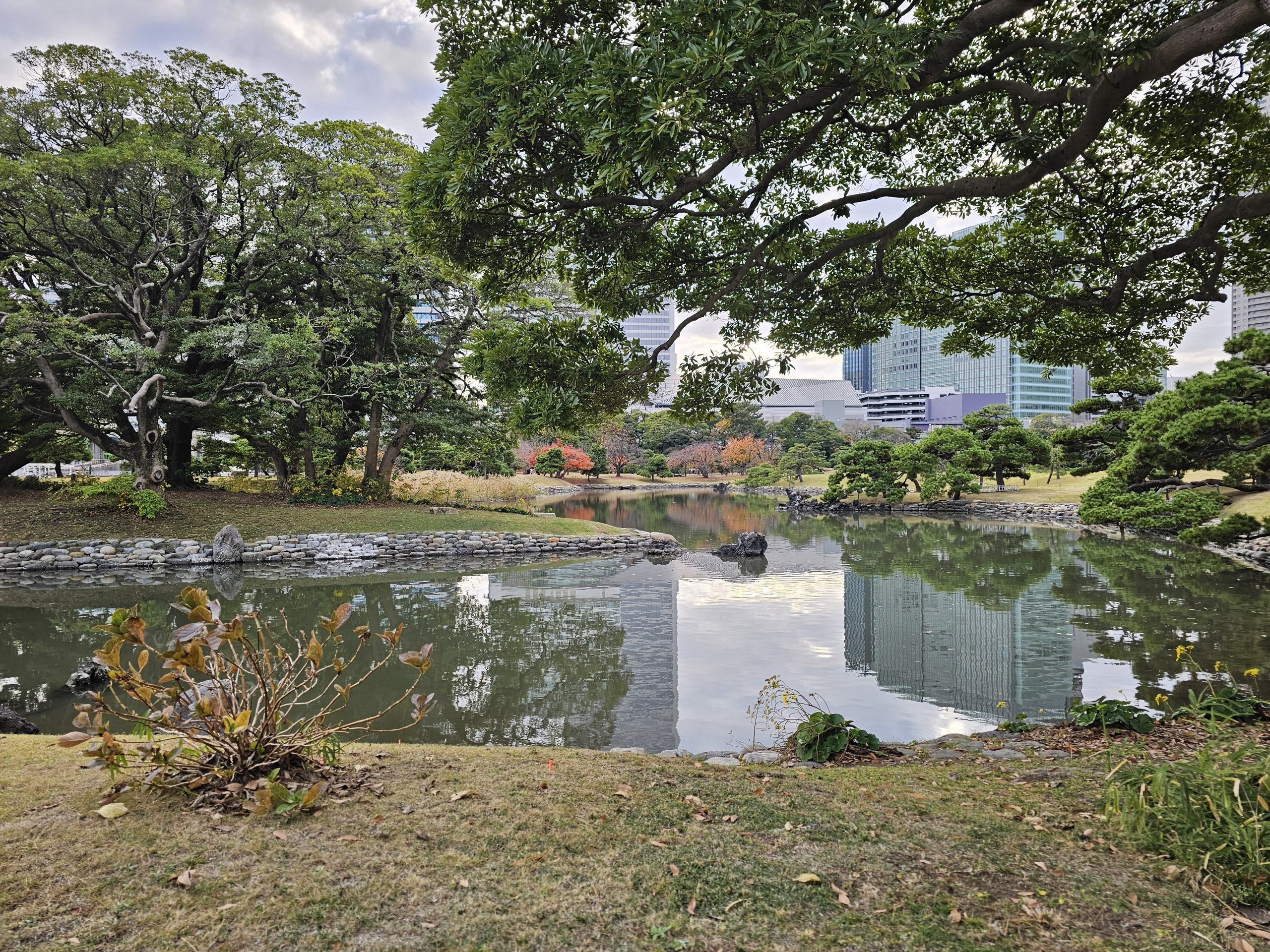 Ogrody Hama-rikyu są jednymi z najpiękniejszych w Tokio. Ogród ten silnie kontrastuje z otaczającym go światem, tj. nowym i starym budownictwem.