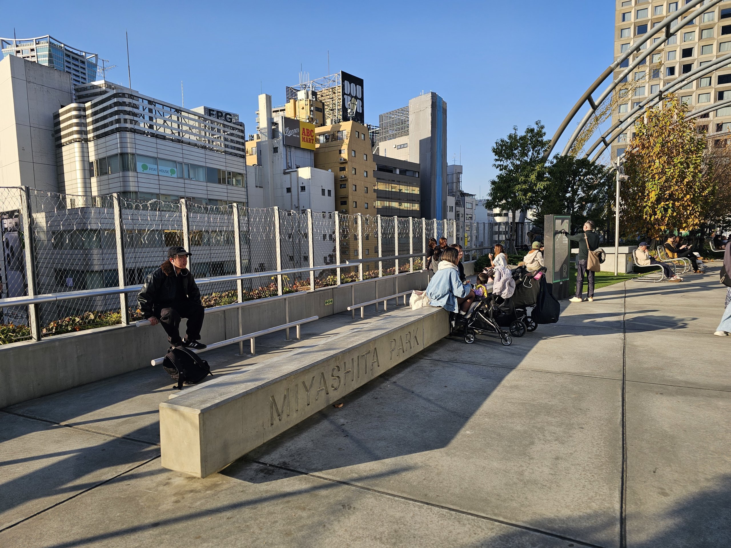 Miyashita Park to miłe miejsce na krótki odpoczynek - można go odwiedzać za darmo 24/7.