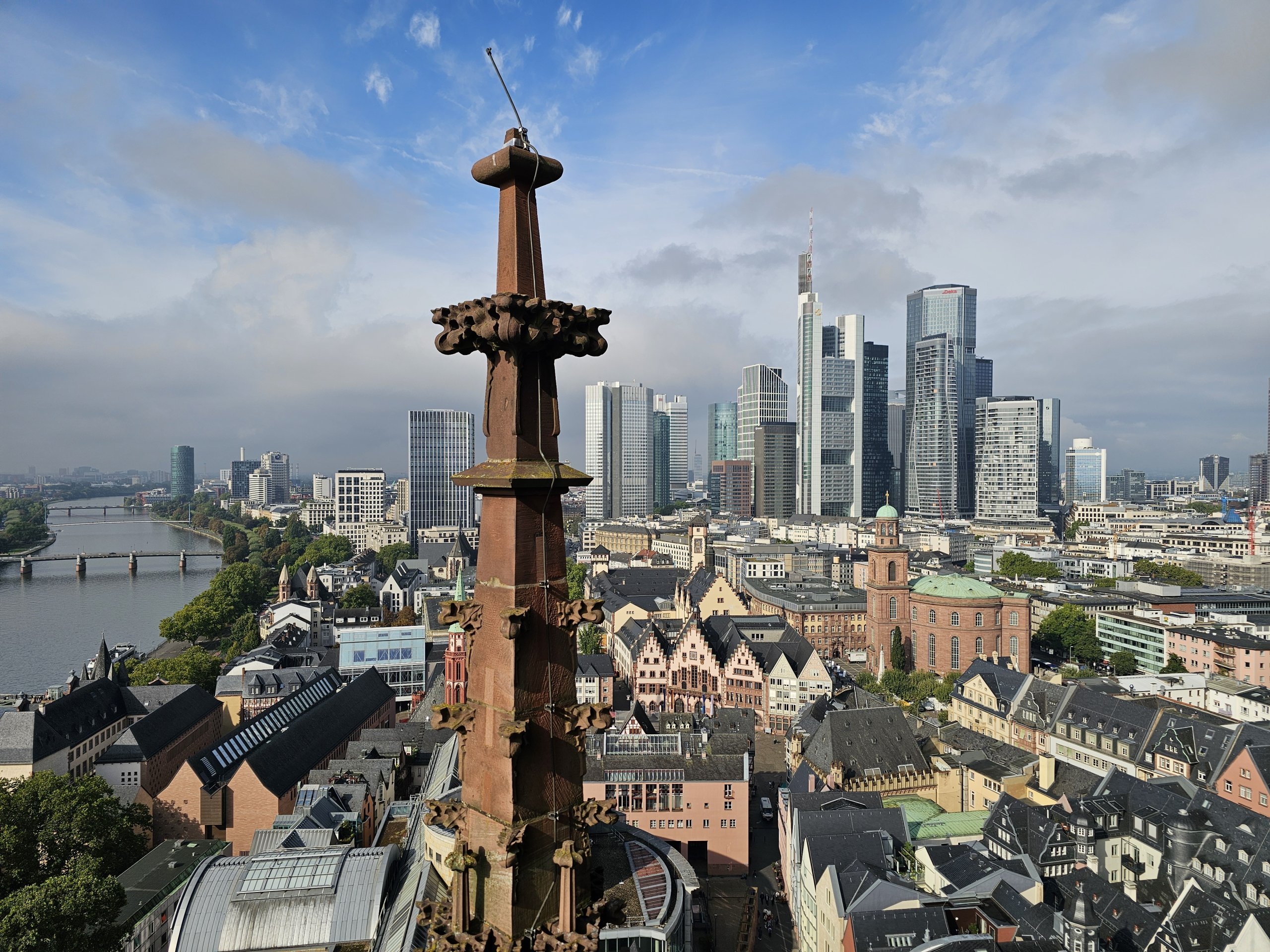 Największą atrakcją frankfurckiej kopuły jest bez wątpienia taras widokowy na wieży, który znajduje się na wysokości około 66 metrów.