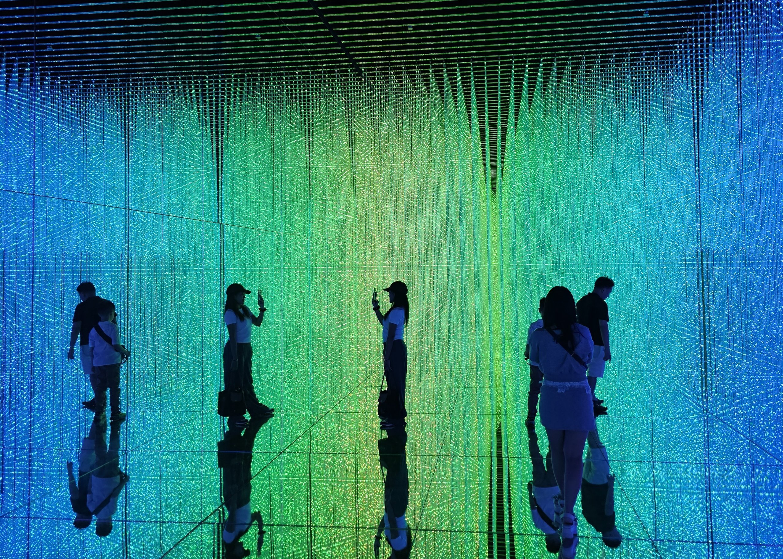 TeamLab to bardzo zabawna instalacja skupiająca się głównie na oświetleniu i efektach sztucznej inteligencji.