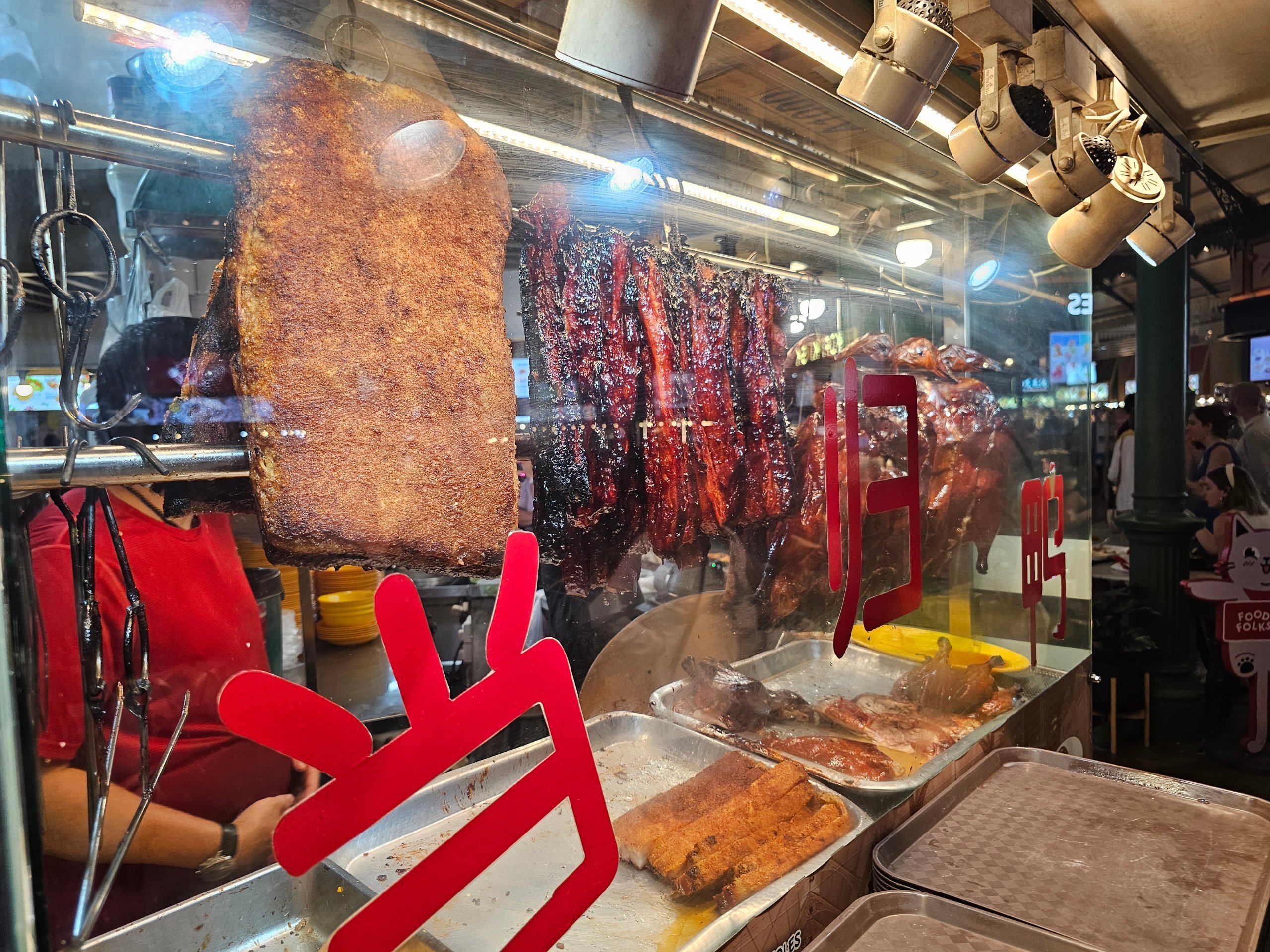 Atmosfera jest zupełnie inna niż wewnątrz targu - zapach grillowanego mięsa, dym z grilla i tętniące życiem nocne życie tworzą jedno z najbardziej kultowych doświadczeń związanych z jedzeniem ulicznym w Singapurze.