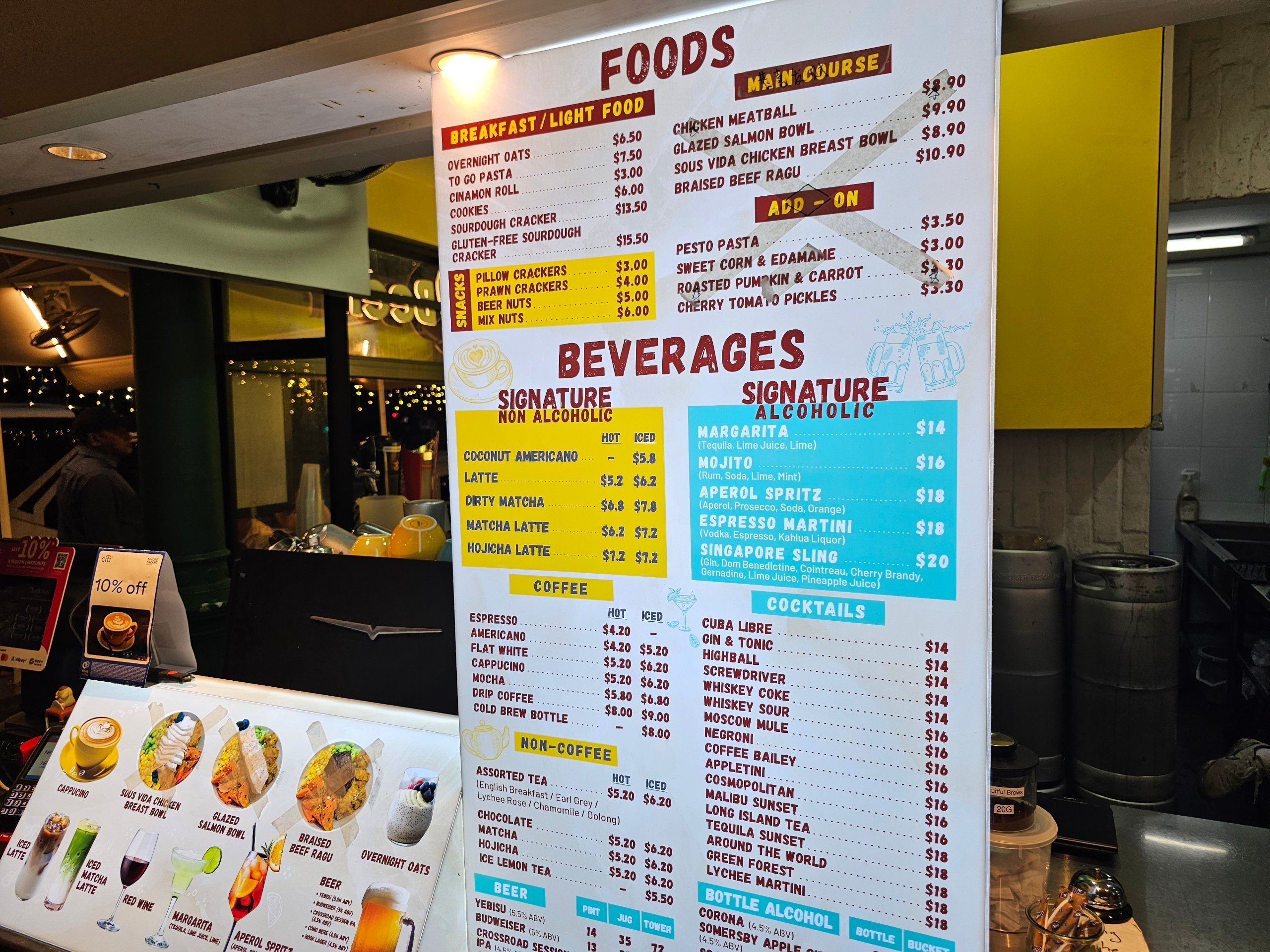 Ceny zazwyczaj wahają się od 5 do 10 sgd za główny posiłek.