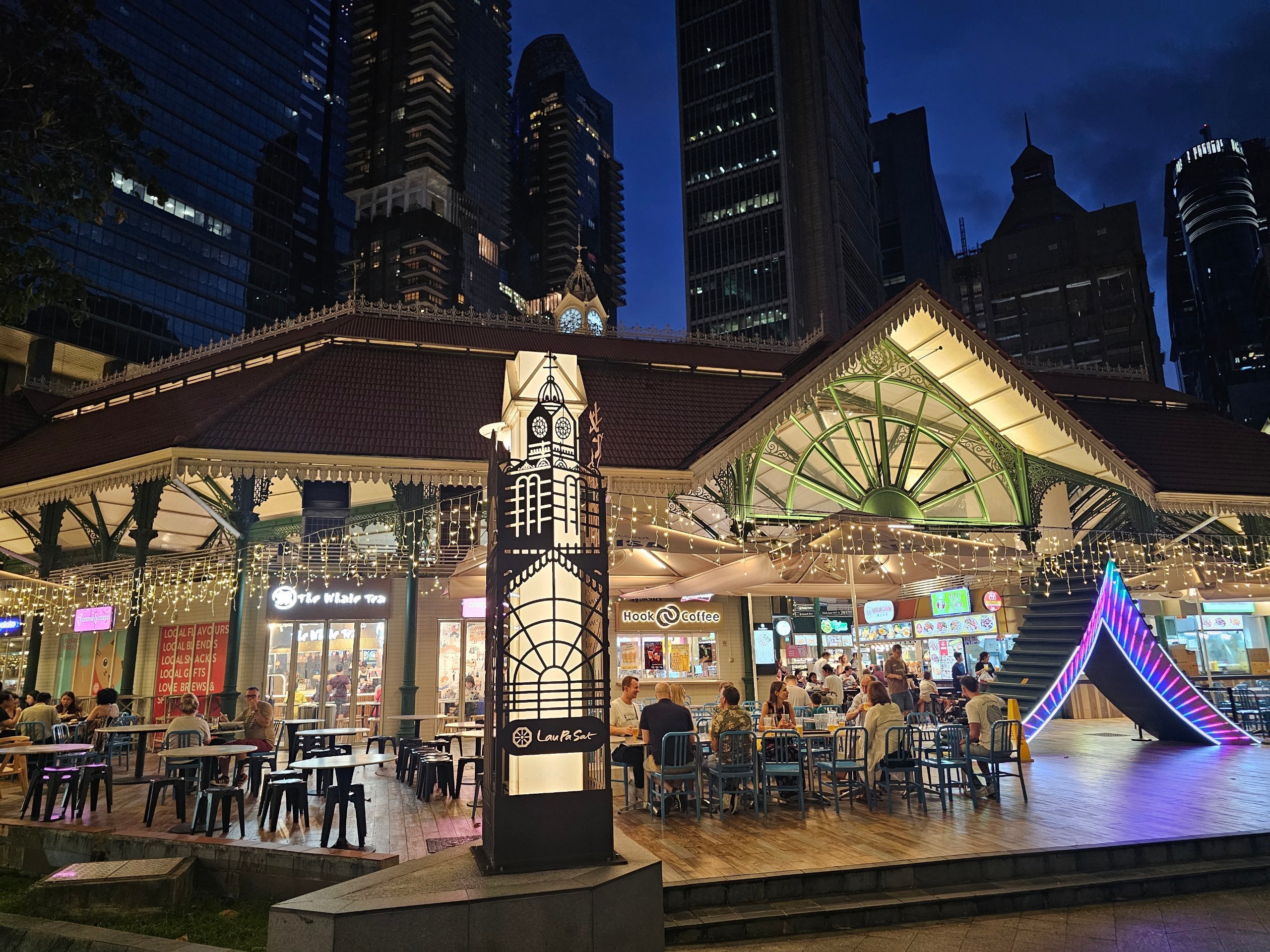 Jeśli planujesz wieczorny spacer po parku Merlion lub wzdłuż nabrzeża Marina Bay, Lau Pa Sat to idealny przystanek na kolację.