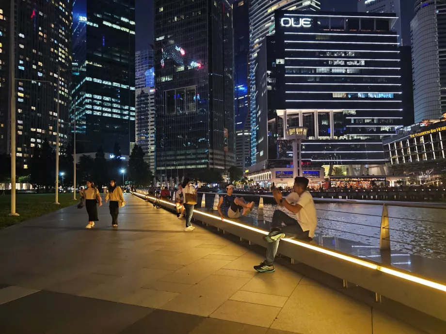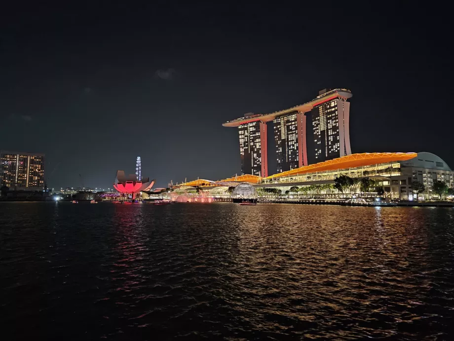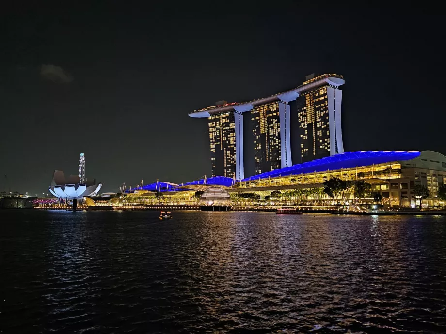 Jej piękno jest szczególnie widoczne w nocnym oświetleniu drapaczy chmur, hotelu Marina Bay Sands, który posiada słynny na całym świecie basen na dachu, diabelski młyn i posągi lwów wzdłuż zatoki.