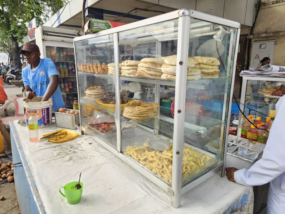 Podczas spaceru po Stone Town natkniesz się na niezliczonych małych sprzedawców sprzedających typowe wypieki mandaazi, grillowanego kurczaka lub banany.