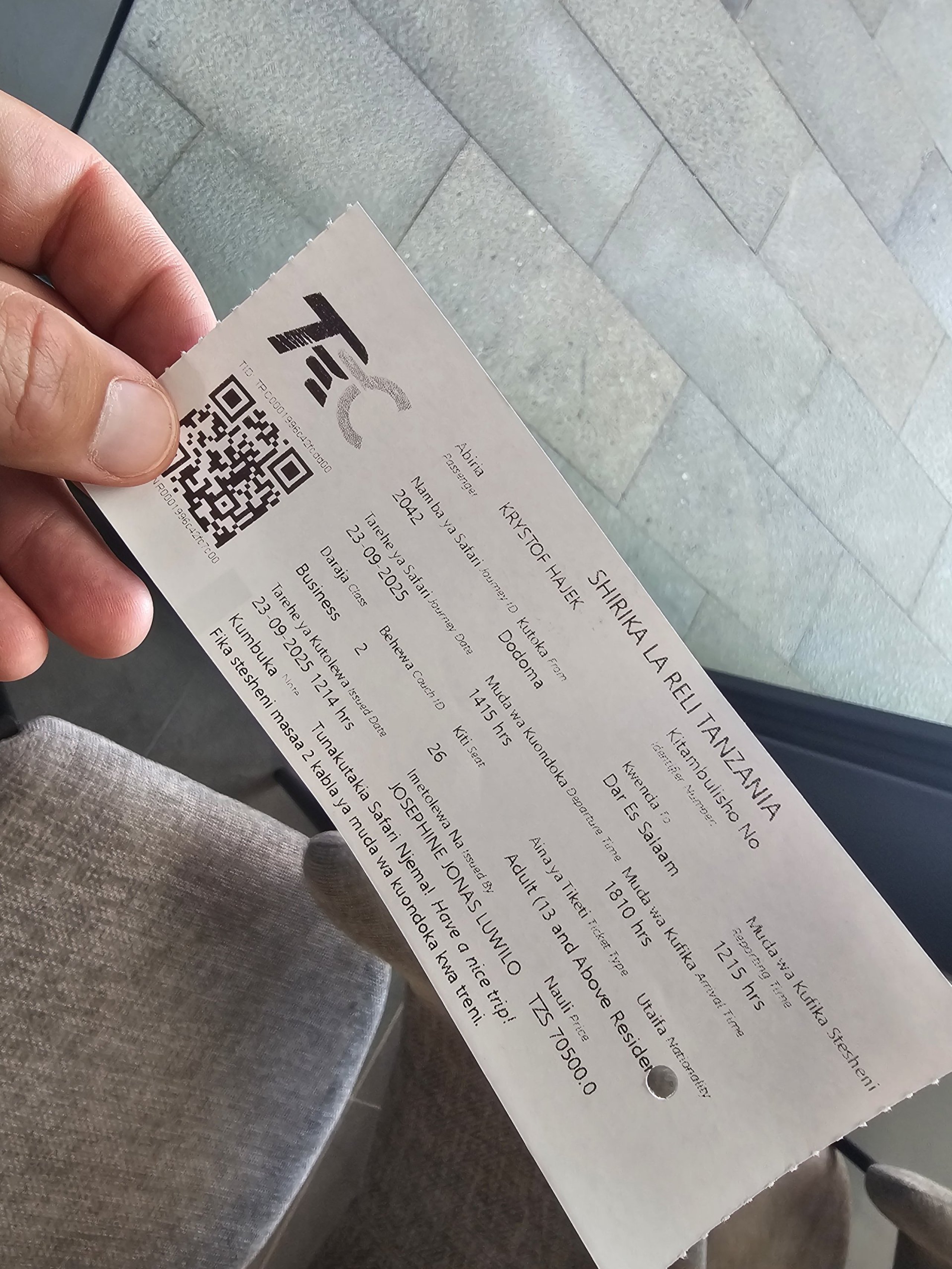 Bilety na nowoczesne pociągi SGR można również kupić za pośrednictwem stron trzecich, takich jak 12go.asia, z których lubimy korzystać podczas podróży po Azji. Jednak w Tanzanii nie działała ona zbyt dobrze. Ta strona internetowa organizuje bilety kolejowe za pośrednictwem lokalnego pośrednika, ale nawet po wielokrotnych ponagleniach nie wysłał on biletu i musiałem kupić nowy bilet na stacji.