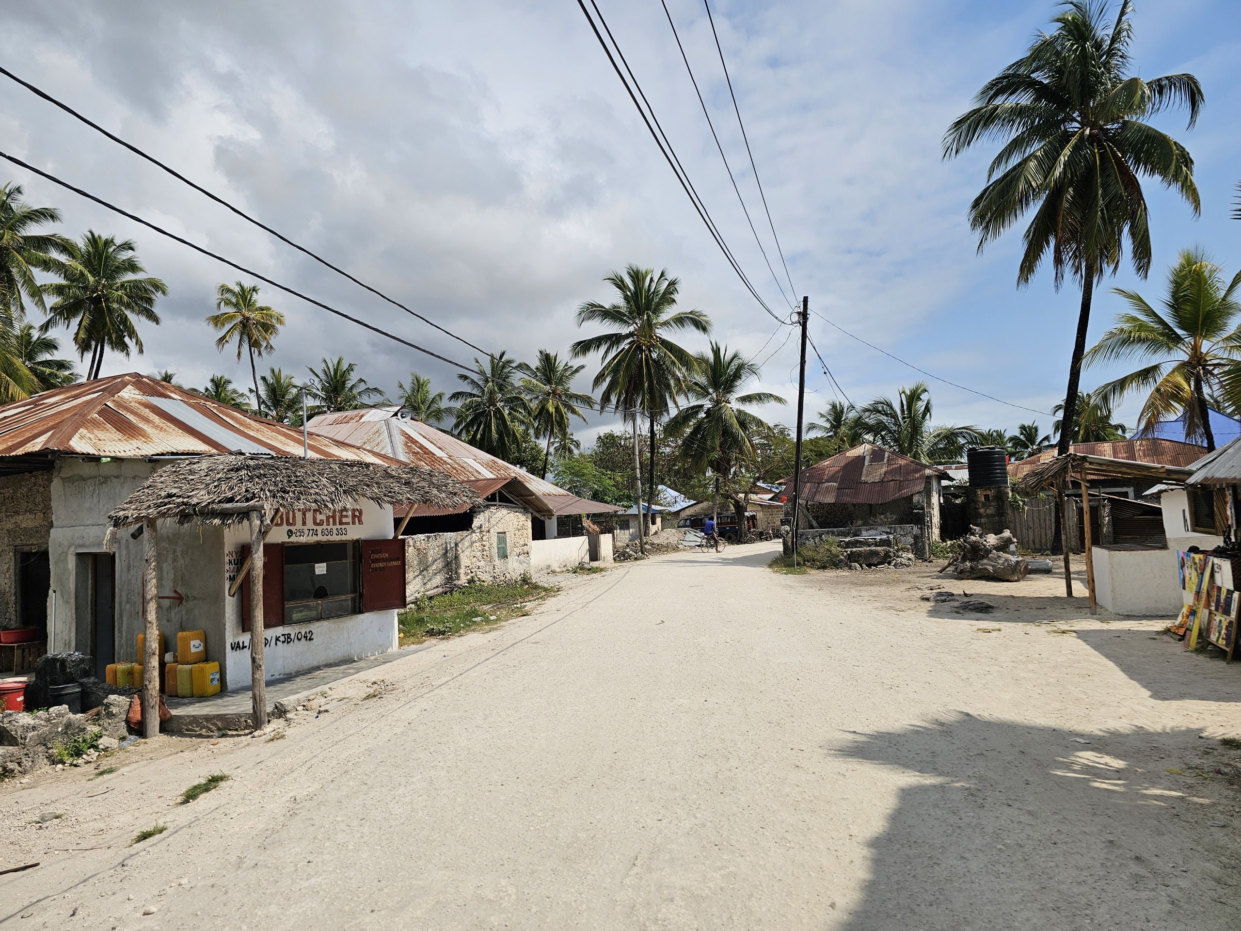 Poza pasem hoteli tuż przy plaży, Jambiani jest bardzo biedną i lokalną wioską, przez którą biegnie polna droga.