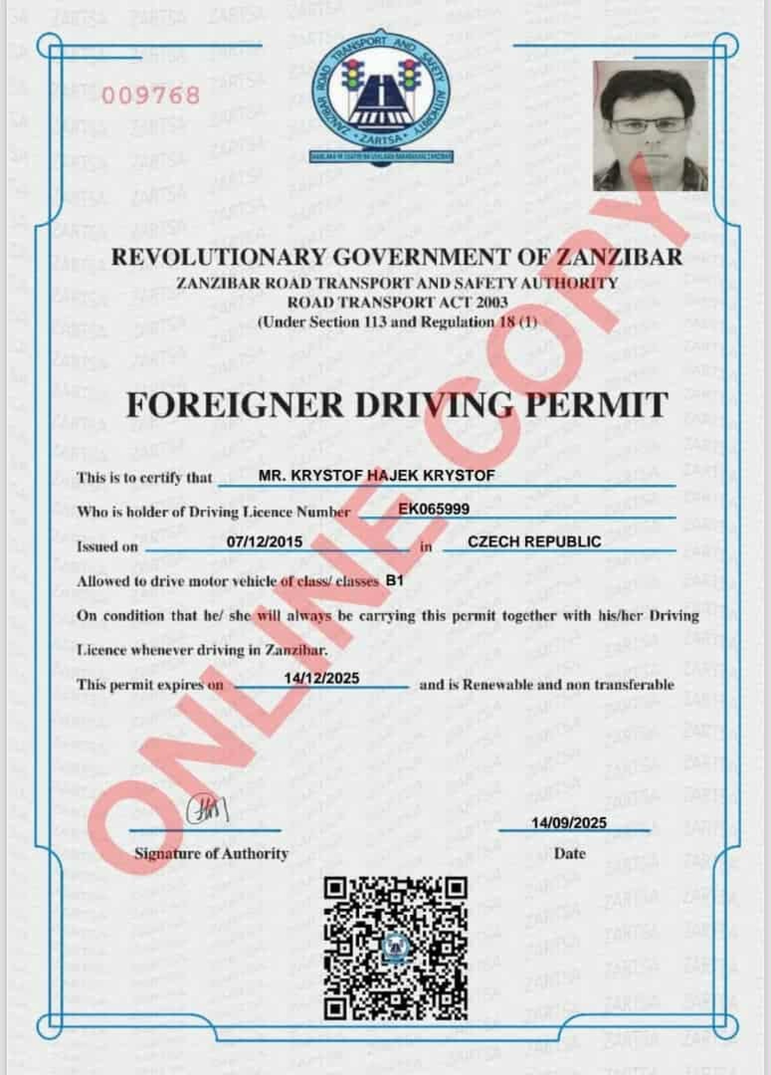 Zazwyczaj wkrótce po zarezerwowaniu samochodu otrzymasz wiadomość na WhastsApp lub e-mail od lokalnej wypożyczalni samochodów z prośbą o kopię prawa jazdy. Nie jest to spam, ale jest to konieczne, aby wypożyczalnia mogła wygenerować prawo jazdy Zanzibar online.