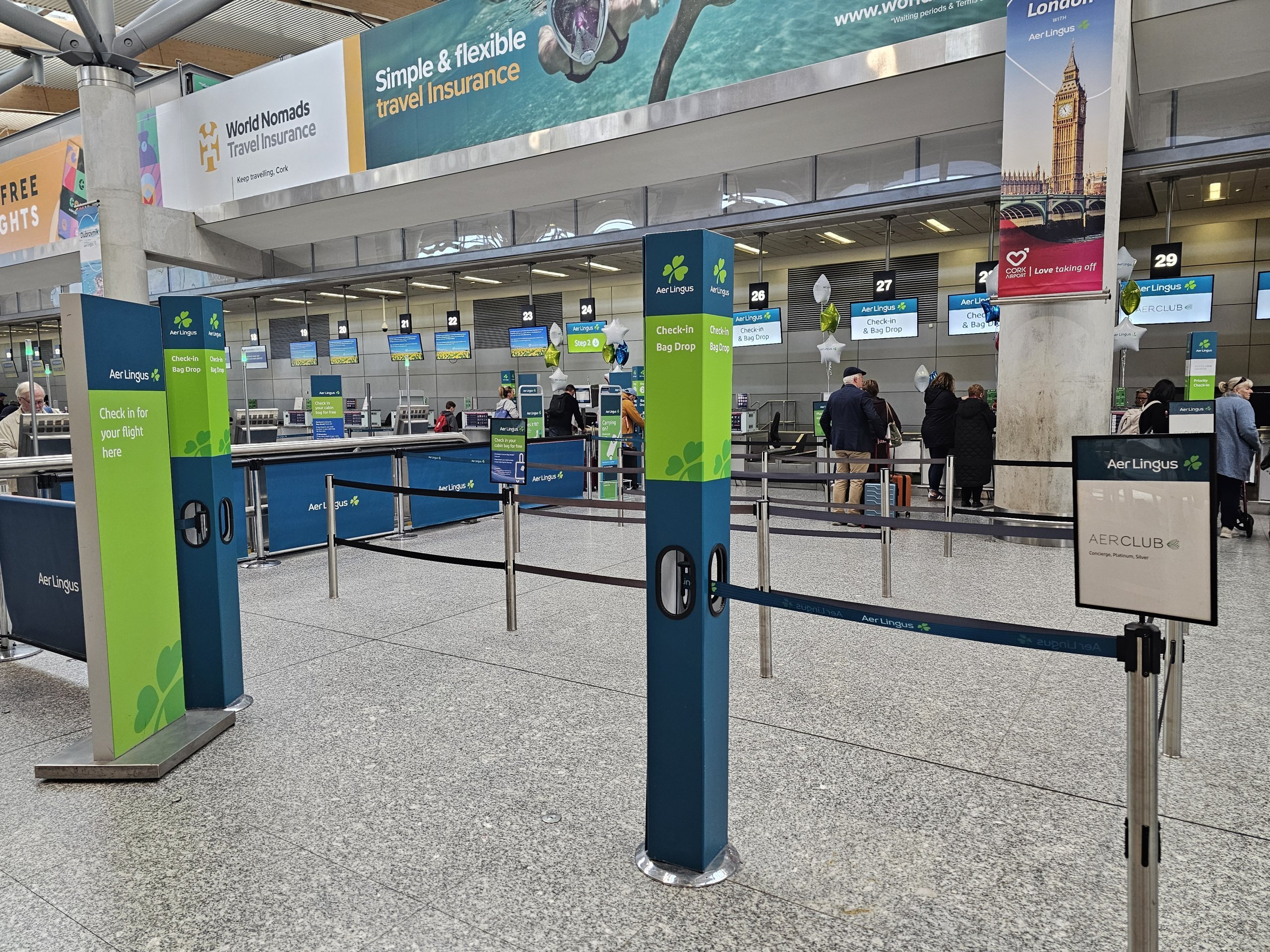 Odprawa na lotnisku jest bezpłatna dla wszystkich pasażerów Aer Lingus. Stanowiska są otwarte w następujący sposób, w zależności od rodzaju lotu: