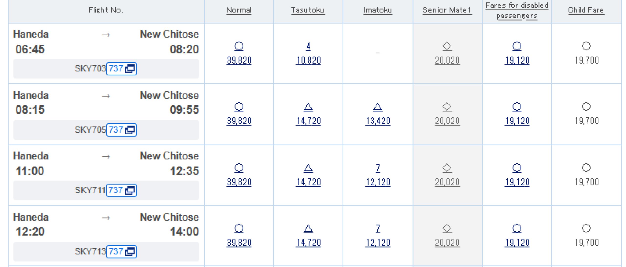 Loty są zwykle sprzedawane na oficjalnej stronie skymark.co.jp.