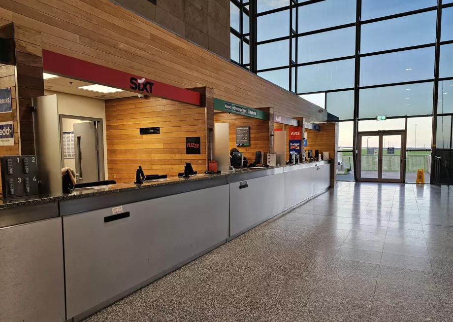 W hali przylotów znajdują się oddziały wielu dużych wypożyczalni.