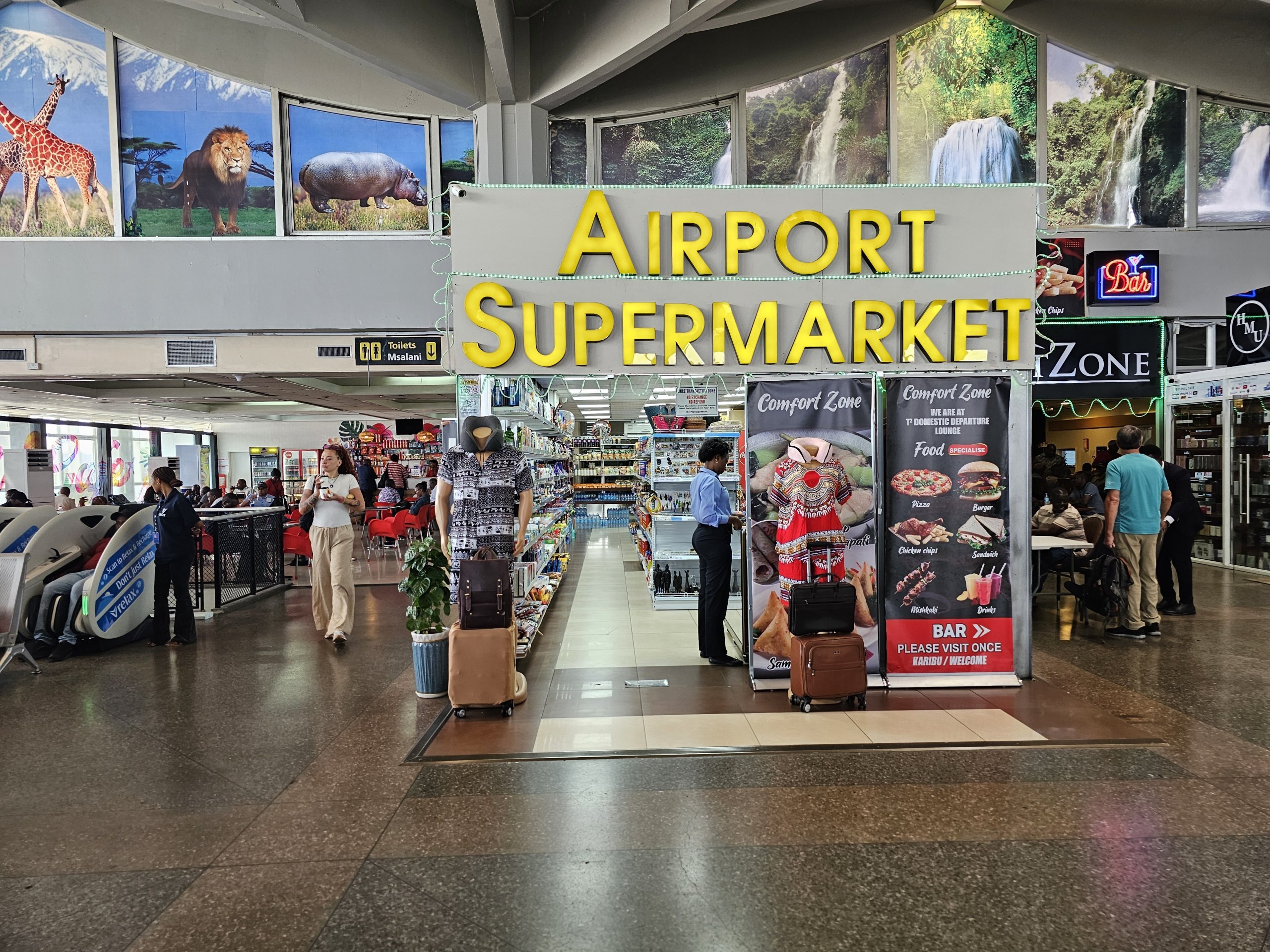 Po kontroli bezpieczeństwa znajduje się kolejny minimarket ze słodyczami i napojami, ale nie ma innego sklepu.