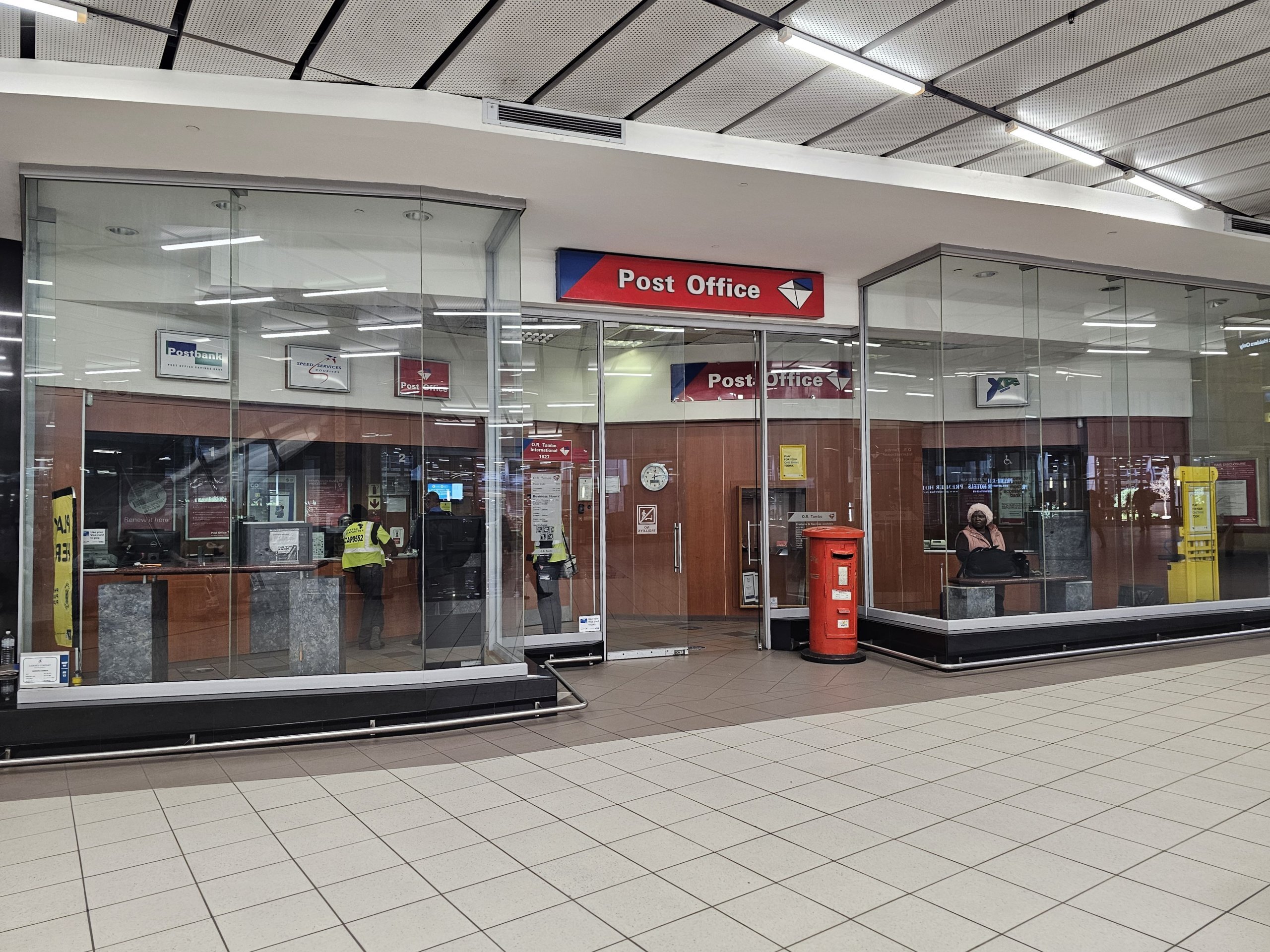 Na parterze głównego terminalu, w pobliżu hali przylotów, znajduje się południowoafrykański urząd pocztowy, czynny codziennie, w tym w weekendy, od 8:00 do 19:00 .