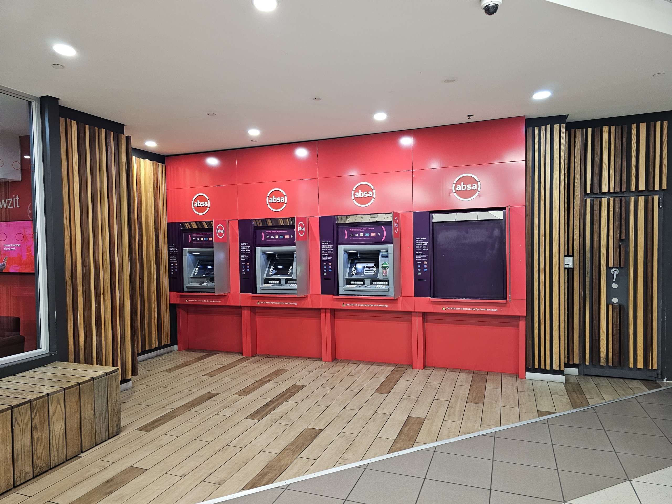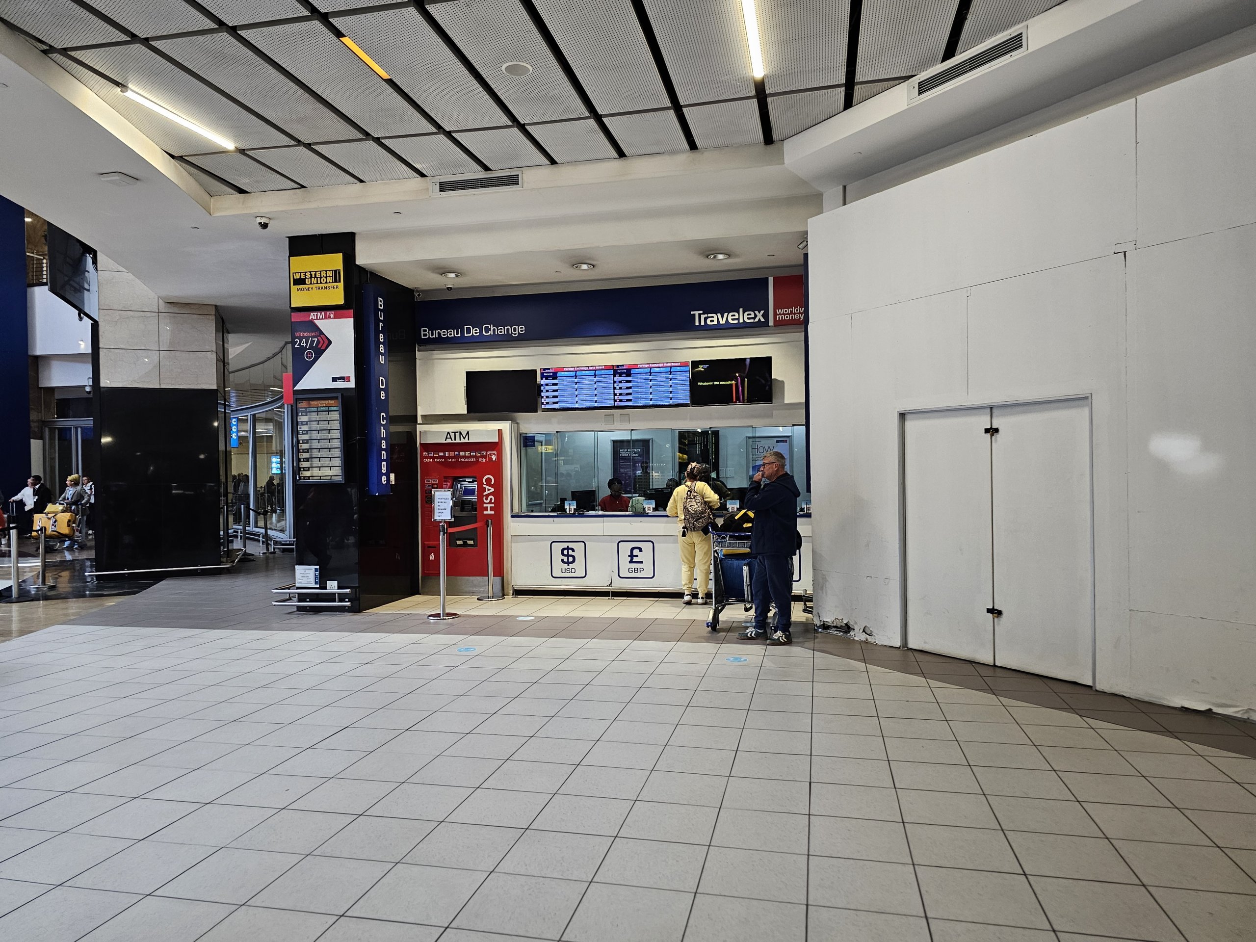 Na całym lotnisku znajduje się wiele bankomatów lokalnych banków, takich jak Nedbank, ABSA, Netbank i Standard Bank, z których można również wypłacać zagraniczne karty.
