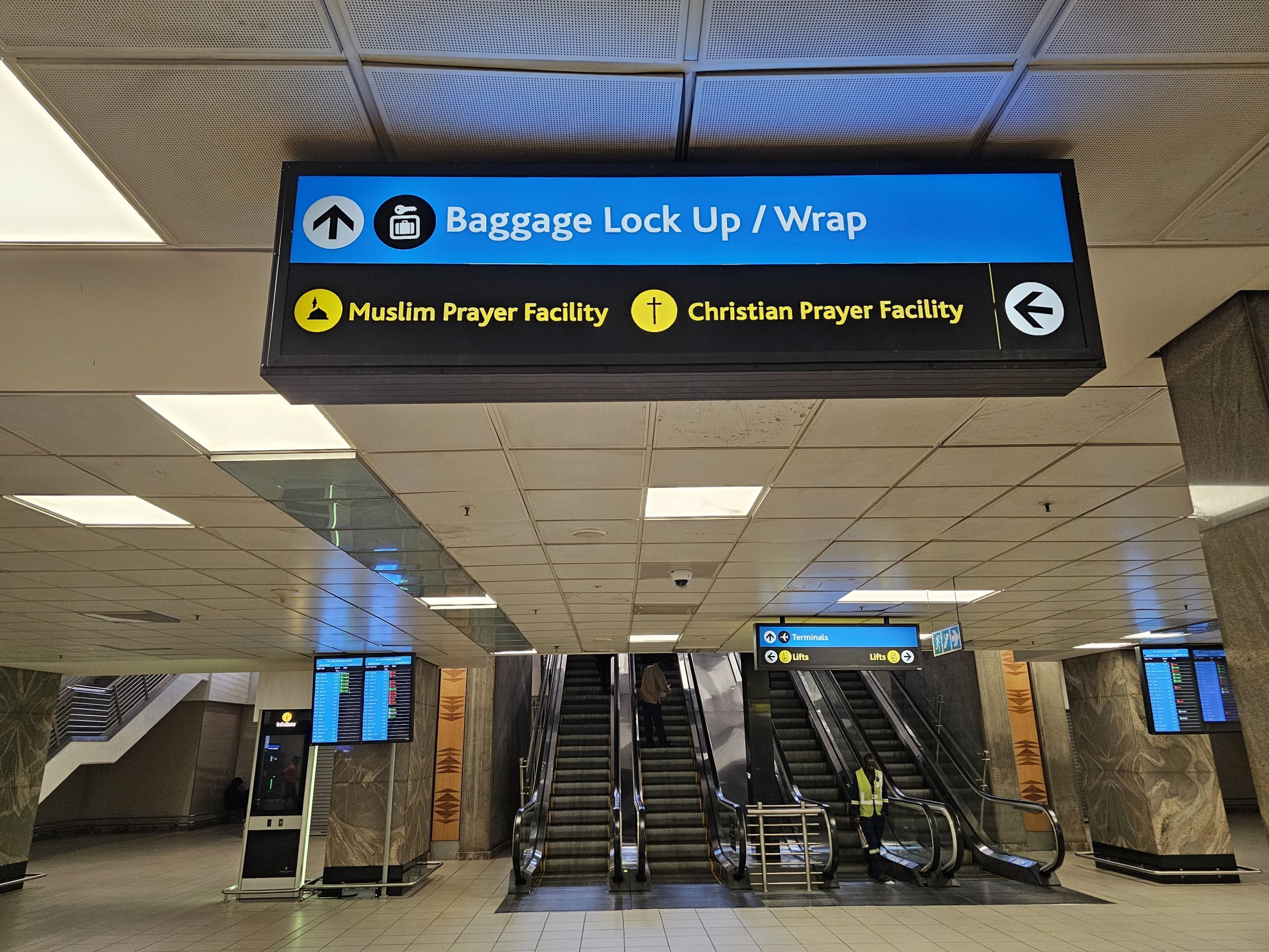 Oznakowanie dalej mówi, że przechowalnia bagażu znajduje się na wprost w kierunku parkingu, ale to oznakowanie jest nieprawidłowe i przechowalnia bagażu znajduje się bezpośrednio po lewej stronie.