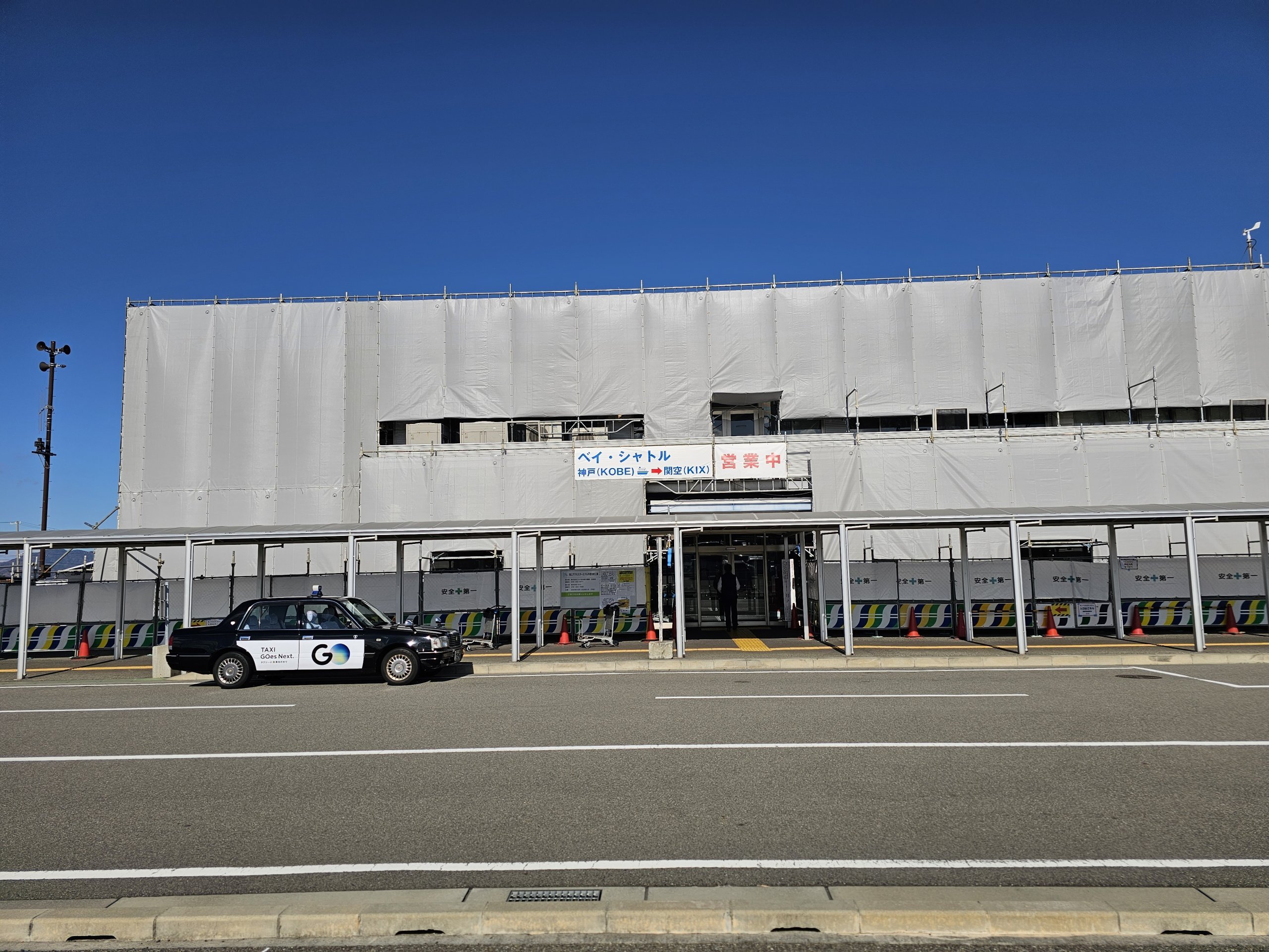 Na lotnisko KansaiKIX na południe od Osaki można dostać się szybkimi promami z przystani oddalonej o około 400 metrów od terminalu.
