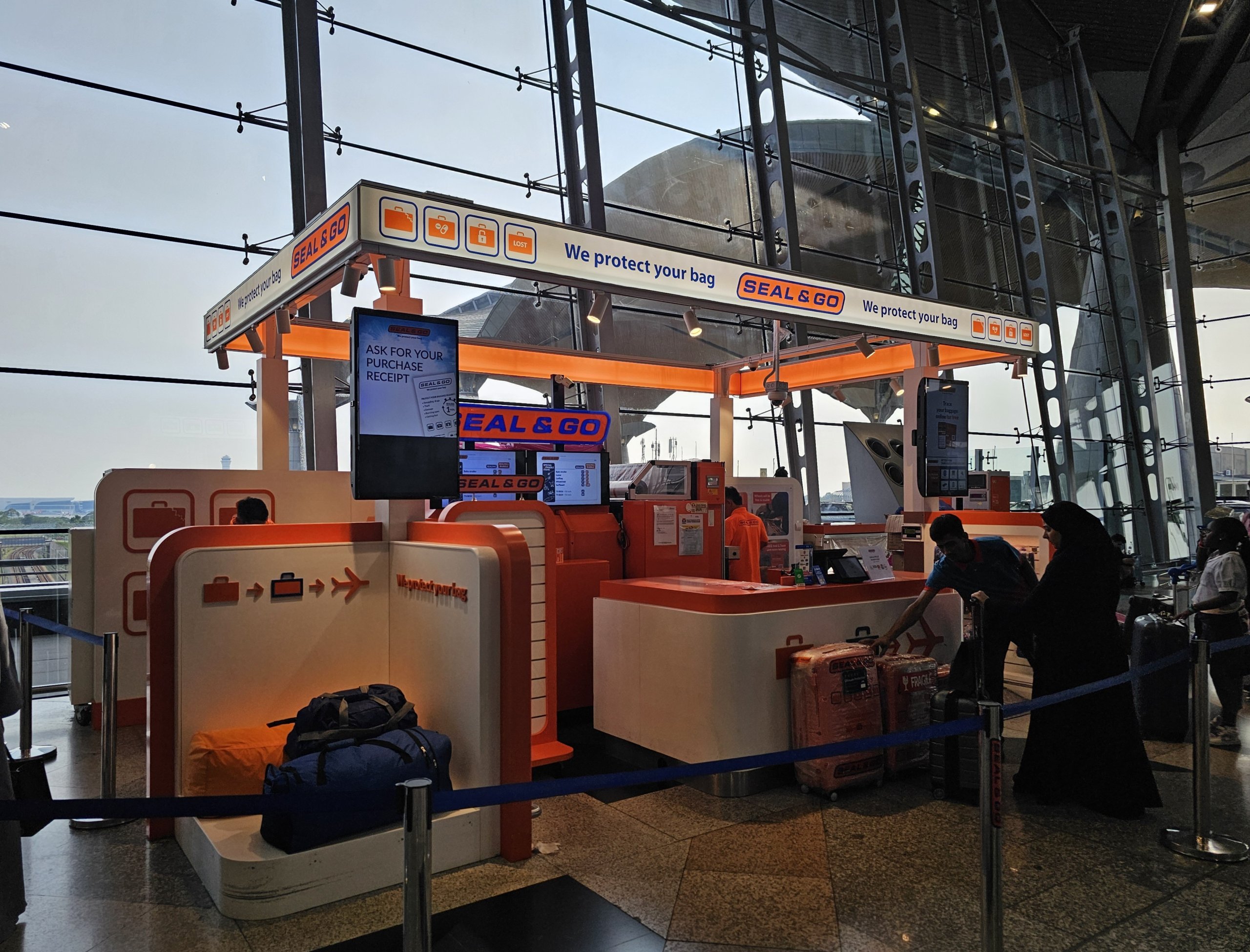 W hali odlotów obu terminali znajduje się kilka kiosków, w których za opłatą 50 myr można zapakować bagaż w folię ochronną.