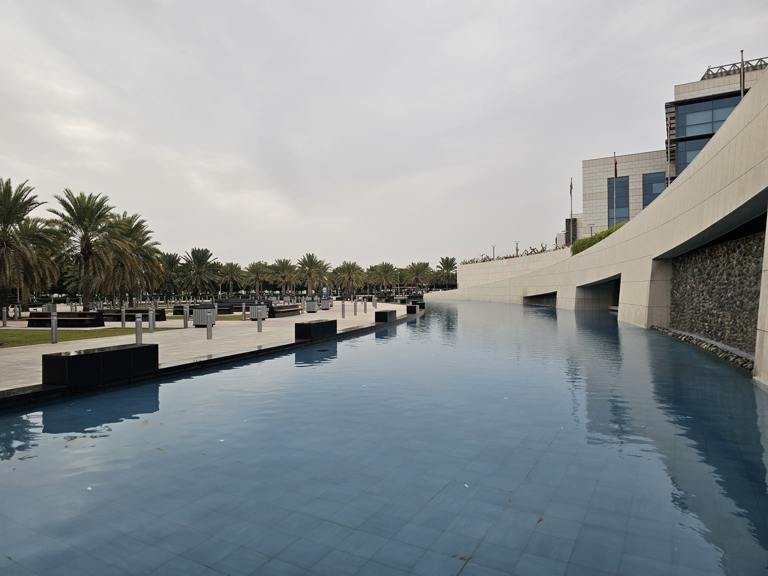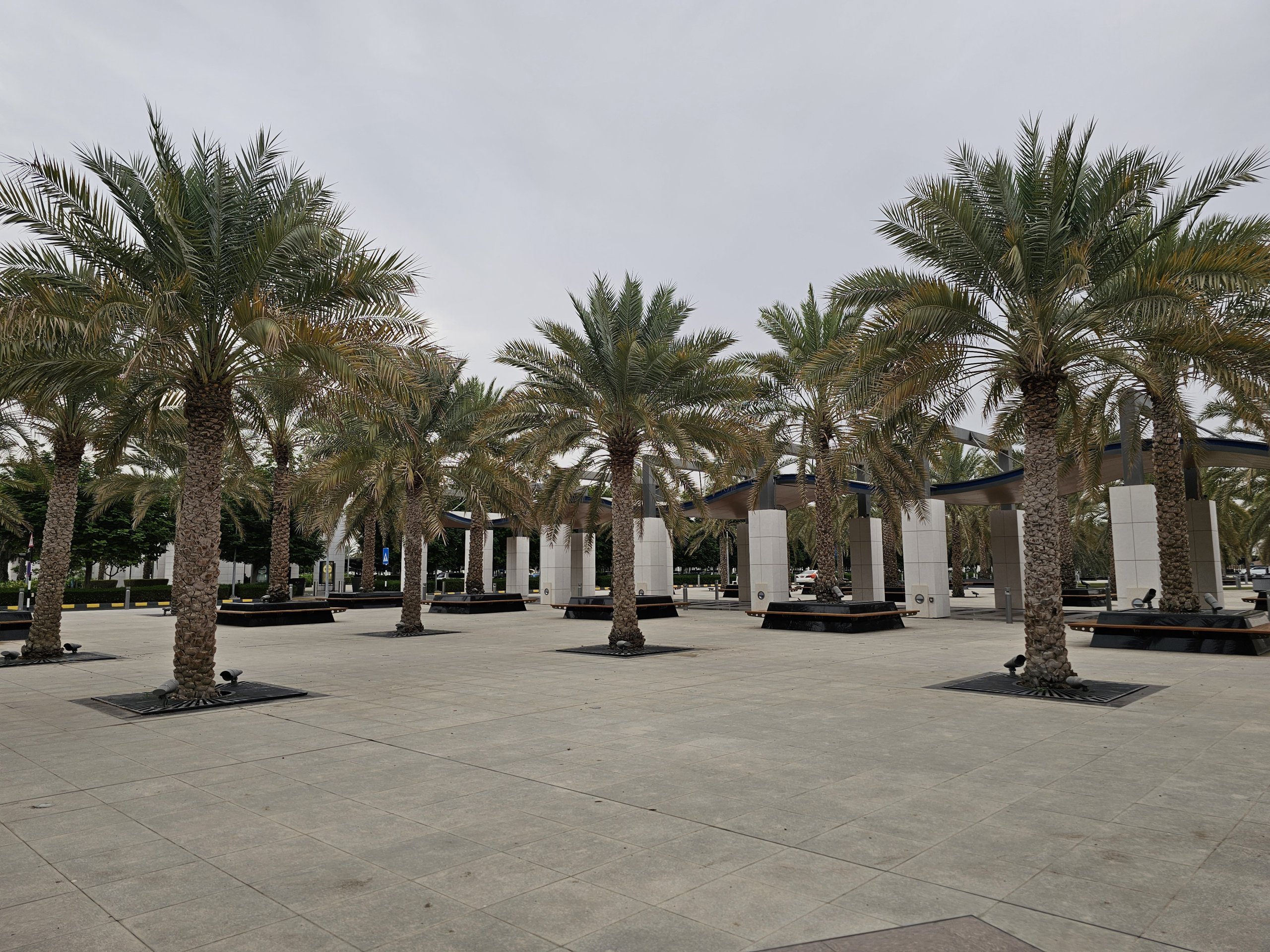 W podziemiach przed terminalem można zrelaksować się w ładnie zaprojektowanym parku z mnóstwem ławek z palmami i fontanną.