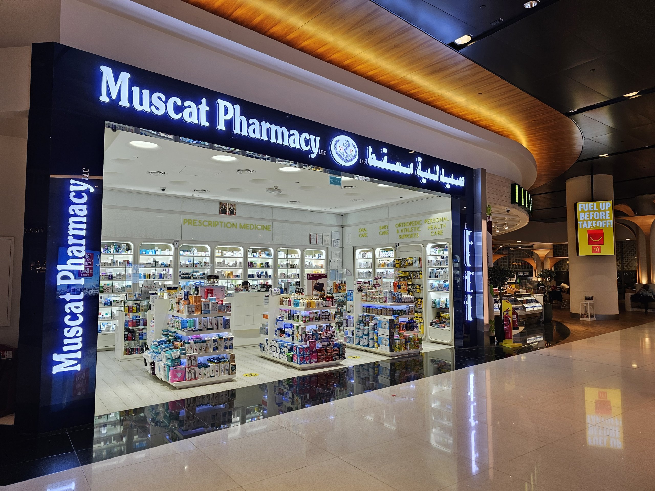 Apteki dostępne są w strefie ogólnodostępnej (poziom odlotów) oraz w strefie tranzytowej.