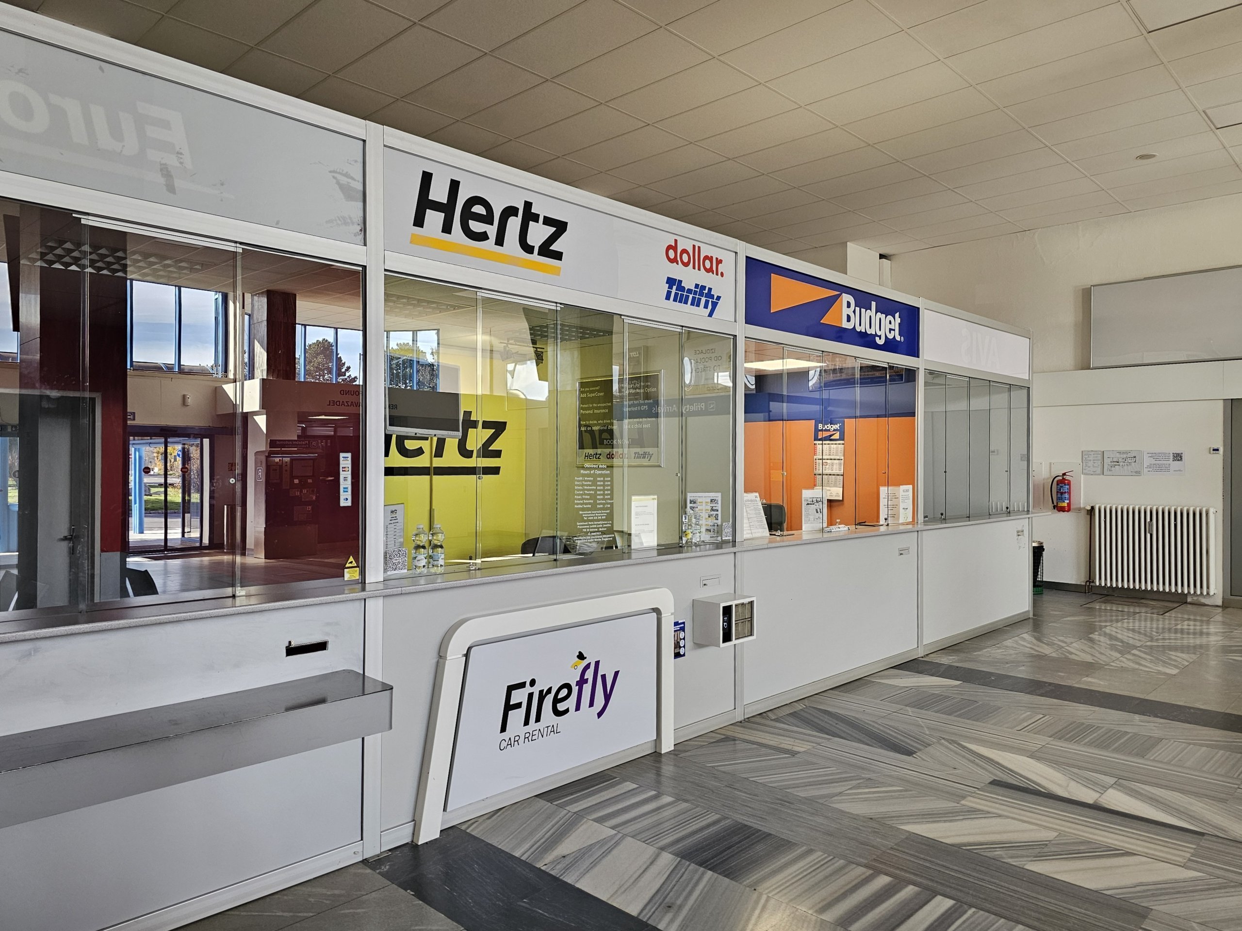 Stanowiska wypożyczalni samochodów znajdują się bezpośrednio w hali przylotów.