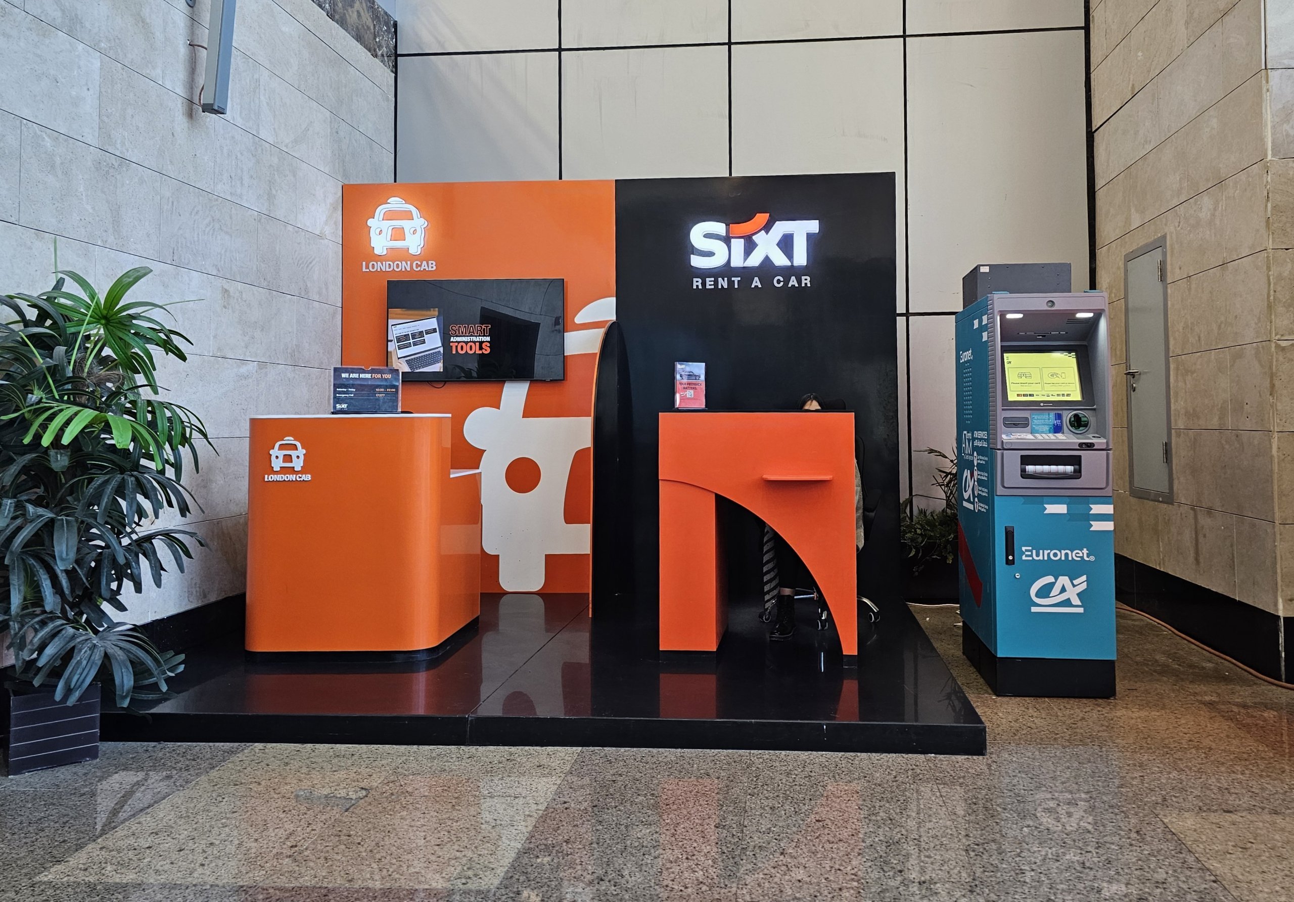 W terminalu znajduje się oddział wypożyczalni samochodów Sixt, ale inne firmy wynajmujące samochody oferują również usługę "Meet and Greet", w której pracownik czeka na Ciebie w hali przylotów z Twoim samochodem.