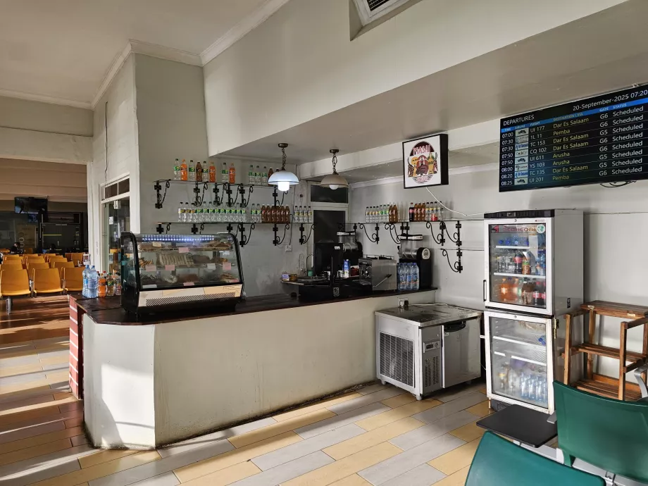 W terminalu międzynarodowym znajduje się restauracja, bar i małe bistro po kontroli bezpieczeństwa. Ceny tutaj są kilkakrotnie wyższe niż gdziekolwiek indziej na Zanzibarze.