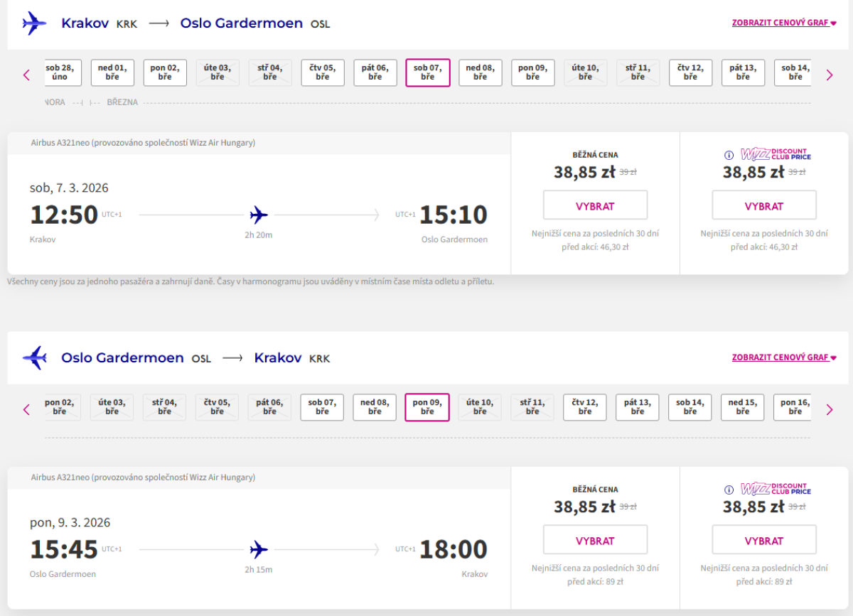 Cena jest ważna zarówno dla członków Wizz Discount Club, jak i osób niebędących członkami.
