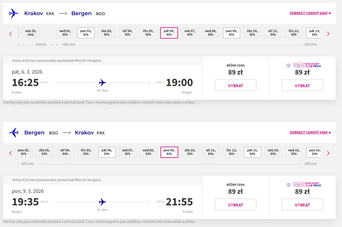 Wizz Air oferuje obecnie tanie loty w dwie strony z Krakowa do norweskich miast
