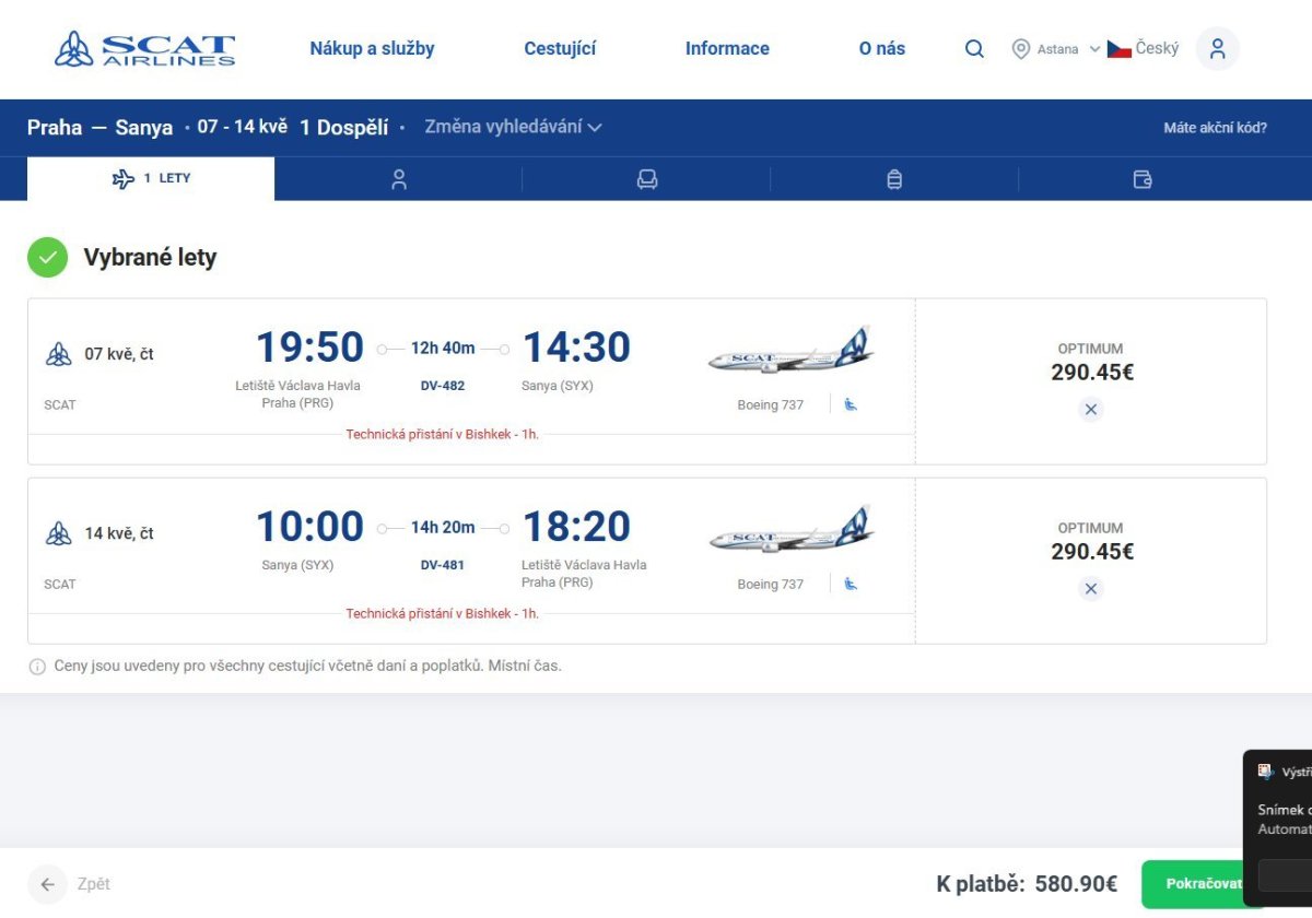 Będziesz latać następującymi liniami lotniczymi: SCAT Airlines