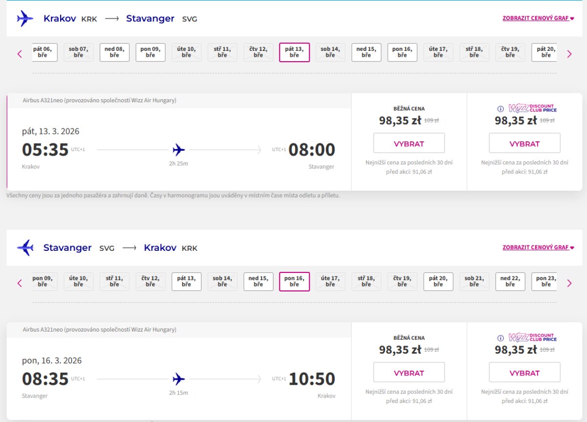Wizz Air oferuje również tanie bilety powrotne z Krakowa do Stavanger w Norwegii. Najtańsze bilety dostępne są od lutego do kwietnia za 197 zł.