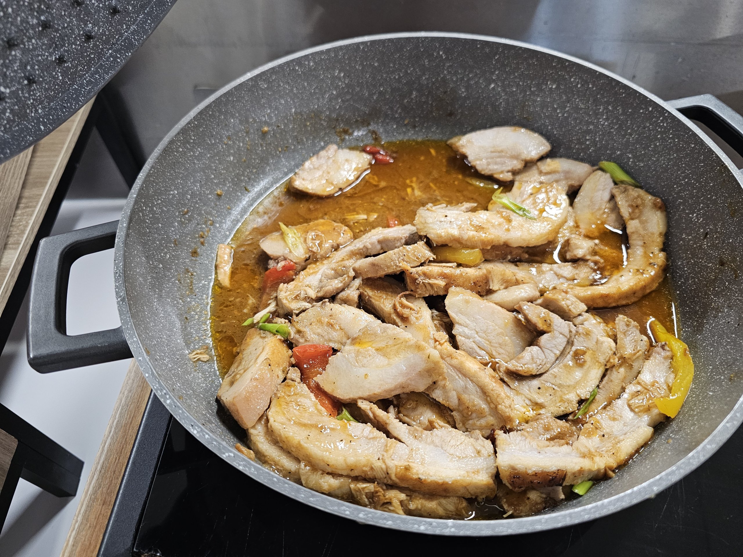 Menu lunchowe w dniu naszej wizyty obejmowało gotowane ziemniaki, makaron z grzybami i bardzo tłustą wieprzowinę.