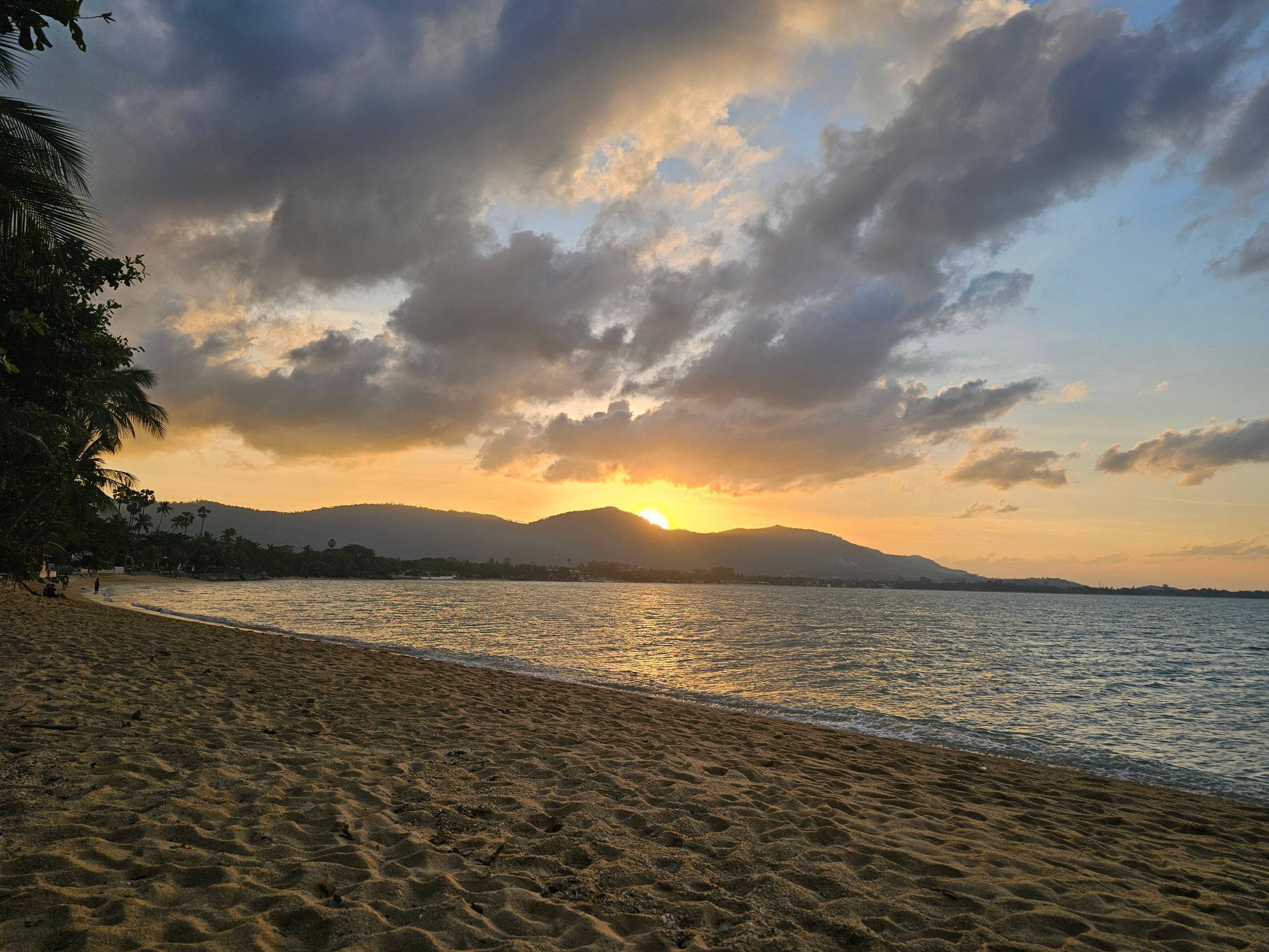 Z plaży można podziwiać spektakularne zachody słońca nad górami Koh Samui.