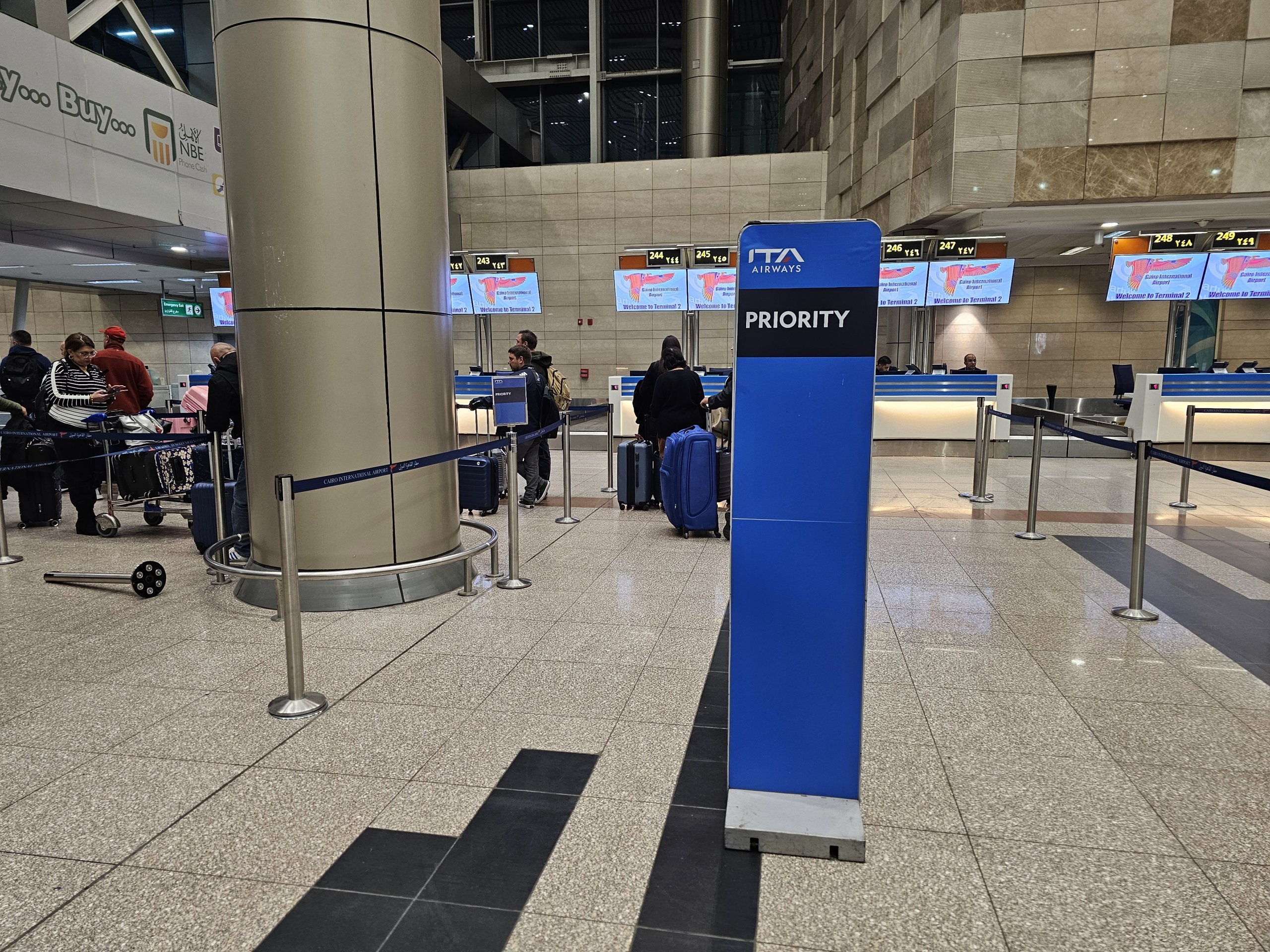 Odprawiam się na lotnisku w Kairze, gdzie ITA Airways ma 5 dedykowanych stanowisk odprawy w Terminalu 2.