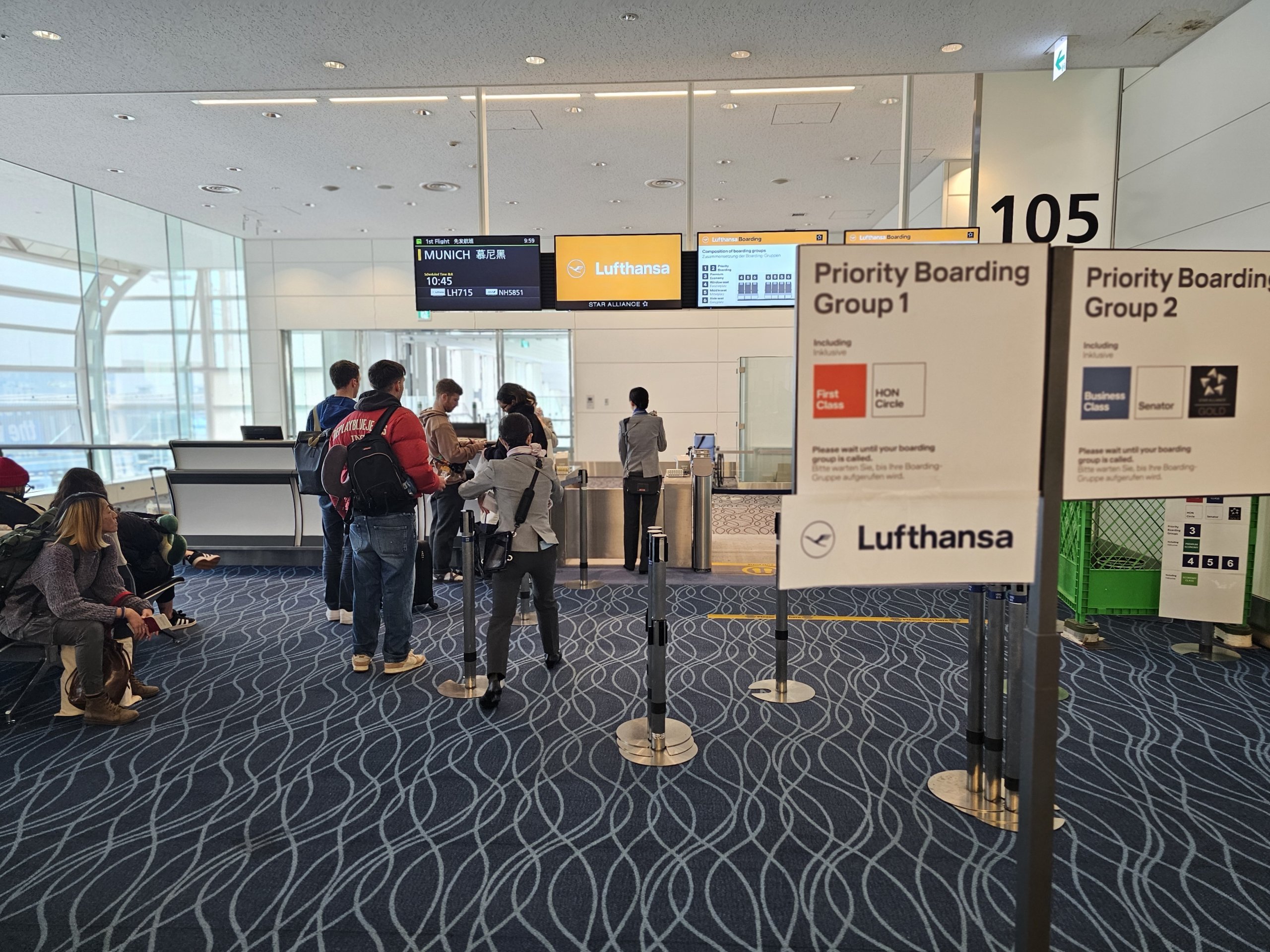 Ponieważ mam dwie duże walizki, muszę udać się do stanowiska odprawy. Niestety, Lufthansa nie ma automatycznych stanowisk na lotnisku Haneda, więc muszę czekać na rozpoczęcie odprawy.