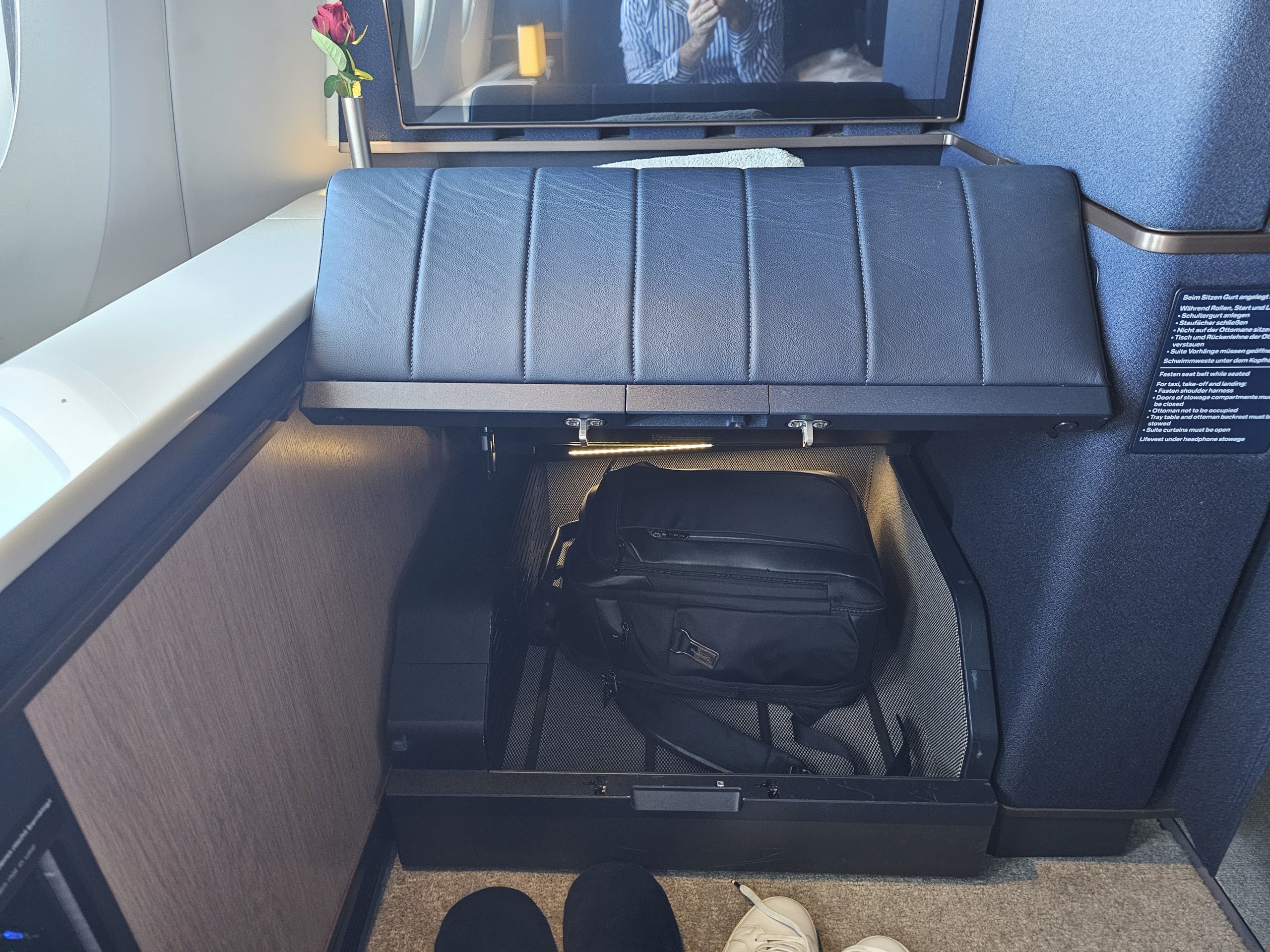 W porównaniu z fotelami w starej klasie pierwszej, jest tu nieco mniej miejsca do przechowywania. Wciąż jest to jednak stosunkowo wystarczająca ilość.