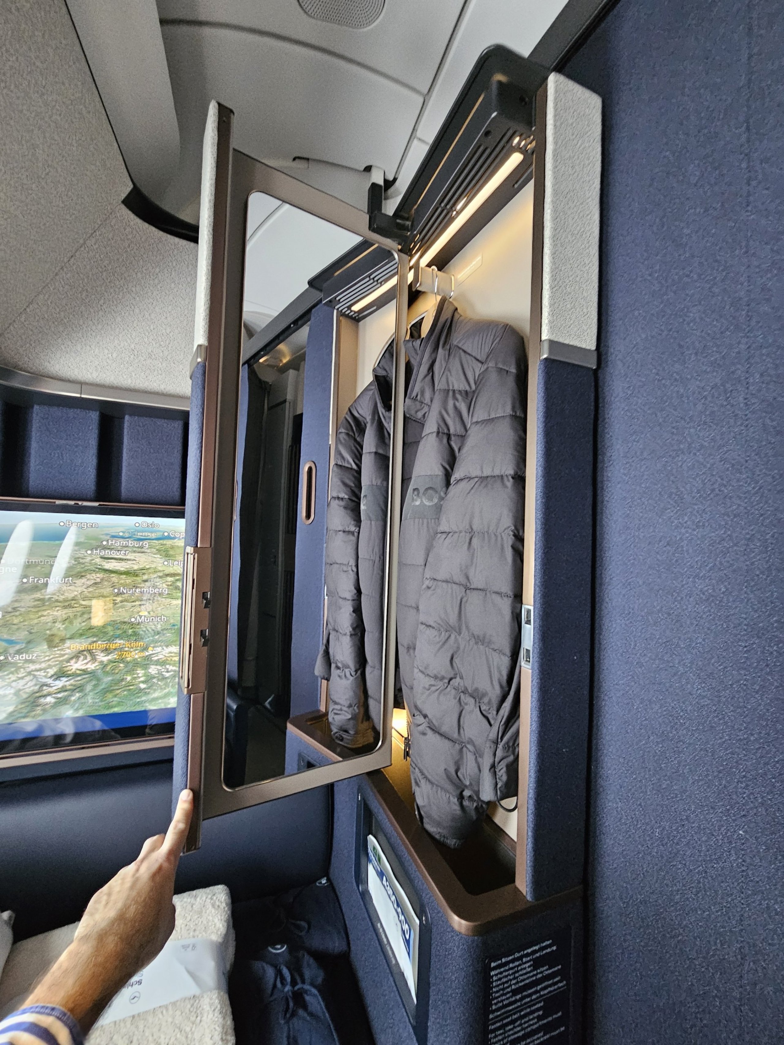 Projekt jest raczej surowy w języku niemieckim, ale dla mnie bardzo elegancki! Oczywiście, nowa La Premiere Air France może być bardziej zabawna w designie, ale znowu nie ma drzwi od podłogi do sufitu ani ekranu, który jest dla mnie absolutnie niezbędny w Pierwszej Klasie.