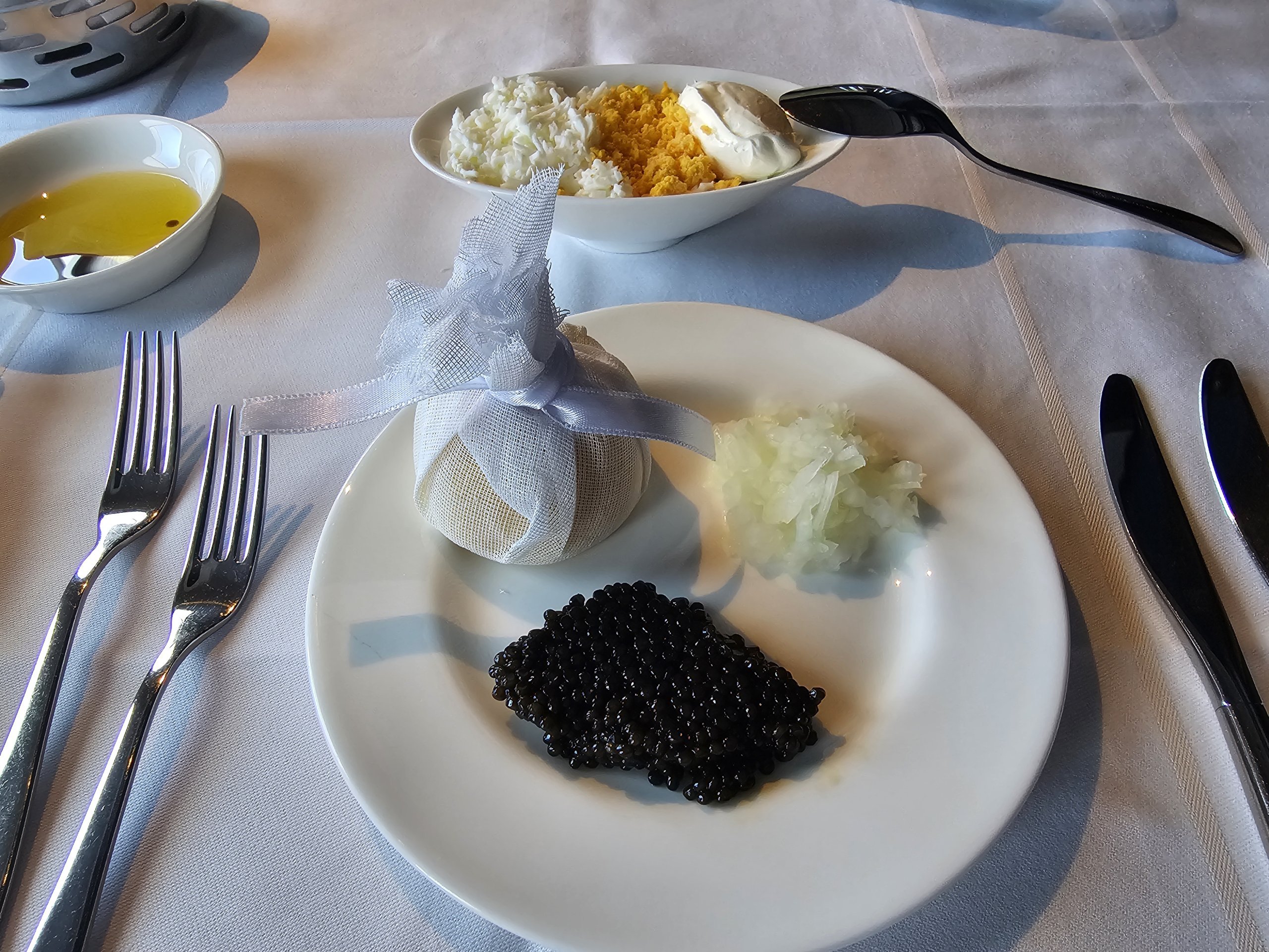 Jeszcze przed głównym serwisem pojawia się kawior - charakterystyczny produkt pierwszej klasy Lufthansy. Serwis kawiorowy jest po prostu koncepcją tej linii lotniczej, którą znają wszyscy stali pasażerowie i entuzjaści lotów.