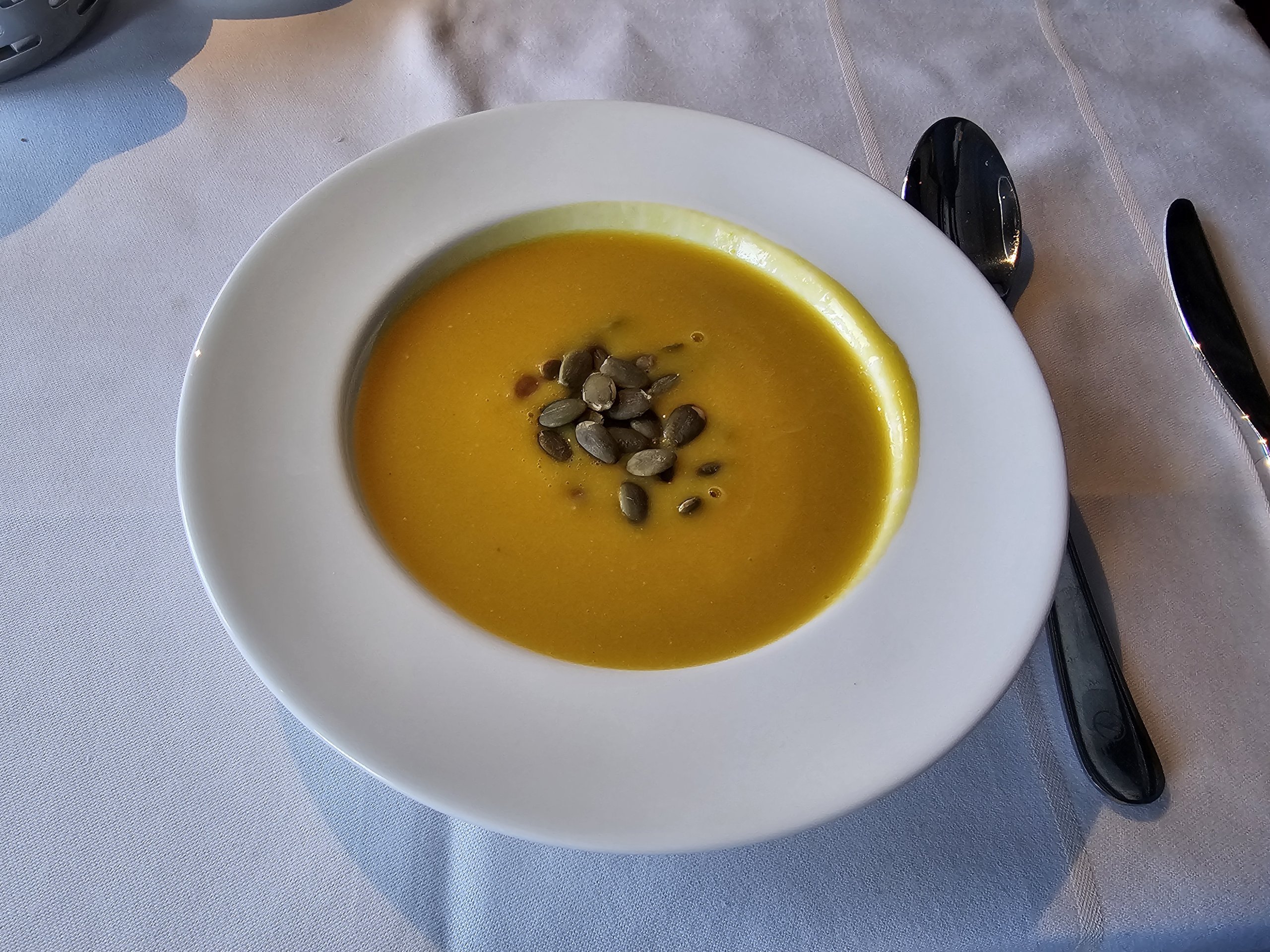 Przed posiłkiem jem świetną zupę z dyni i imbiru.