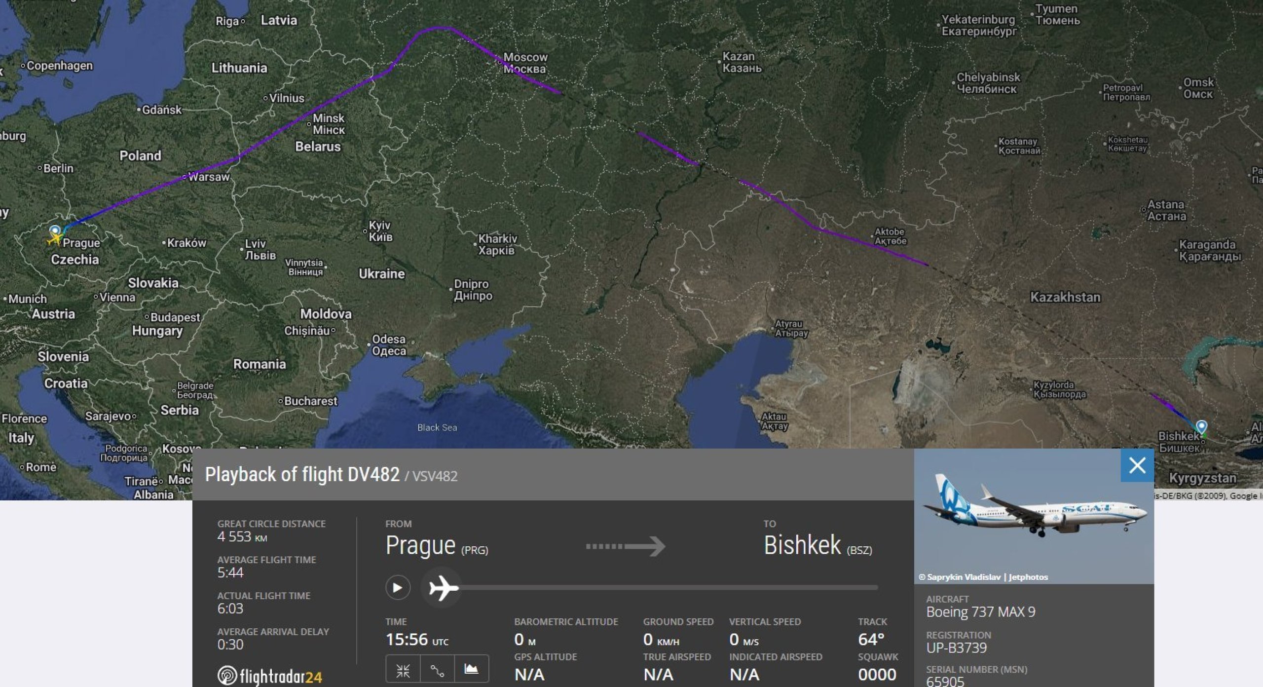Ze względu na fakt, że lecimy wąskokadłubowym Boeingiem 737, nie jest realne przelecenie tego dystansu na jednym tankowaniu. W związku z tym w Kirgistanie odbywa się międzylądowanie techniczne w celu uzupełnienia paliwa. Międzylądowanie trwa niecałą godzinę, a pasażerowie przez cały czas pozostają na pokładzie samolotu.