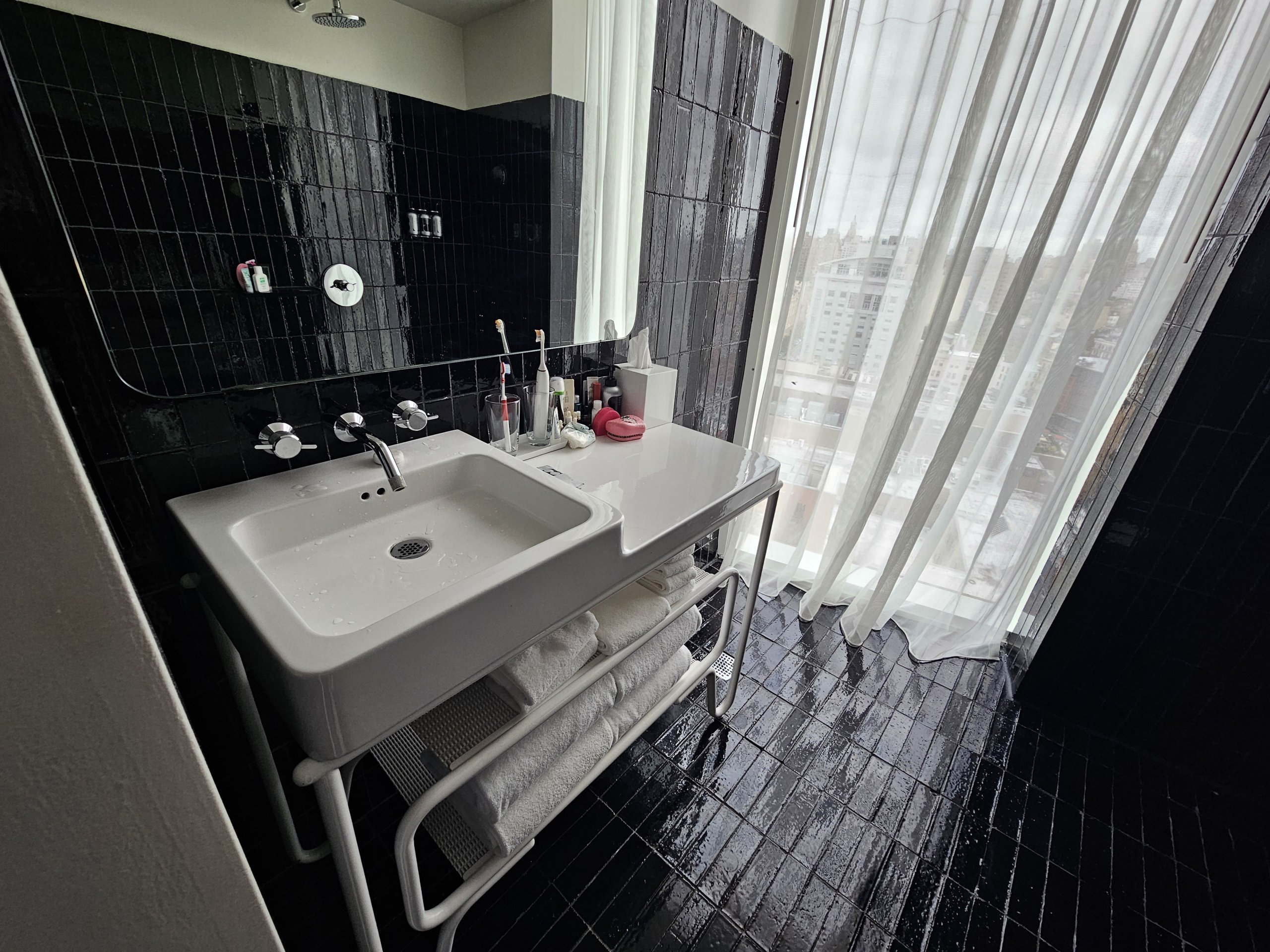 Ale najmniej praktyczną częścią pokoju jest dla nas zdecydowanie łazienka. Designersko wygląda całkiem ciekawie, ale brakuje jakiegokolwiek oddzielenia łazienki od reszty pomieszczenia - nie ma ani drzwi, ani zasłony.